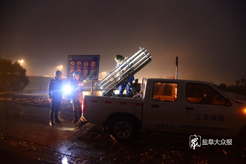 “三、二、一,发射!”,随着一声令响,四枚火箭弹相继射出,冲入云霄,伴随着震耳的轰鸣声,在漆黑的夜幕下划过一道道明亮的光束。为改善大气环境、缓解旱情,助力打造盐城生态蓝,11月30日夜间,盐城市气象局联合滨海县气象局抓住有利时机地点,在滨海县通榆河处成功实施了人工增雨作业。图为滨海县通榆河人工增雨作业现场。盐阜大众报报业集团全媒体记者 唐承兵 摄 通讯员 王红梅