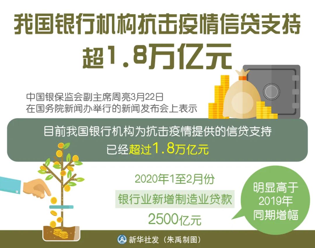 ◎中国银保监会有关负责人表示,目前我国银行机构为抗击疫情提供的信贷支持已经超过1.8万亿元。1至2月份,银行业新增制造业贷款2500亿元。