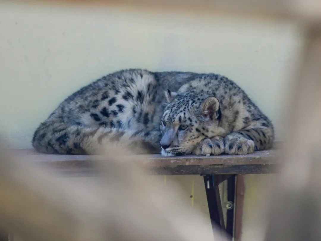 △资料图:这是4月27日在青海省西宁野生动物园小型猫科动物馆拍摄的雪豹。