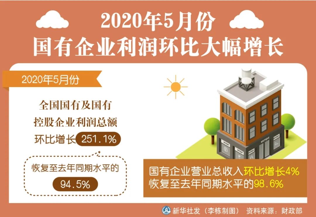 ◎财政部发布数据显示,5月份,全国国有及国有控股企业利润总额环比增长251.1%,恢复至去年同期水平的94.5%。