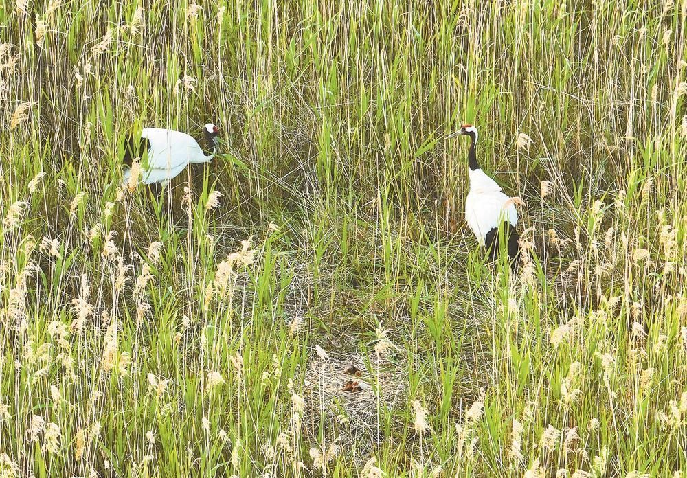 4月15日,在江苏盐城珍禽自然保护区内,工作人员发现丹顶鹤筑巢并产蛋2枚。5月15日至16日,工作人员通过无人机日常巡护监测,惊喜地发现这对丹顶鹤顺利孵化出2只雏鹤。根据科研监测记录,自2013年以来,野外放飞的丹顶鹤共14只,其中有4只丹顶鹤于2017年在野外自然配对成功,6年来累计繁殖15只丹顶鹤。这些丹顶鹤野外繁育的后代与人类社会隔绝,完全在自然环境中成长,具备了野外生存和繁殖能力,它们成年后将追随丹顶鹤西部种群北迁,有效扩大丹顶鹤野生种群,使丹顶鹤“子二代”野化成为可能。全文阅读