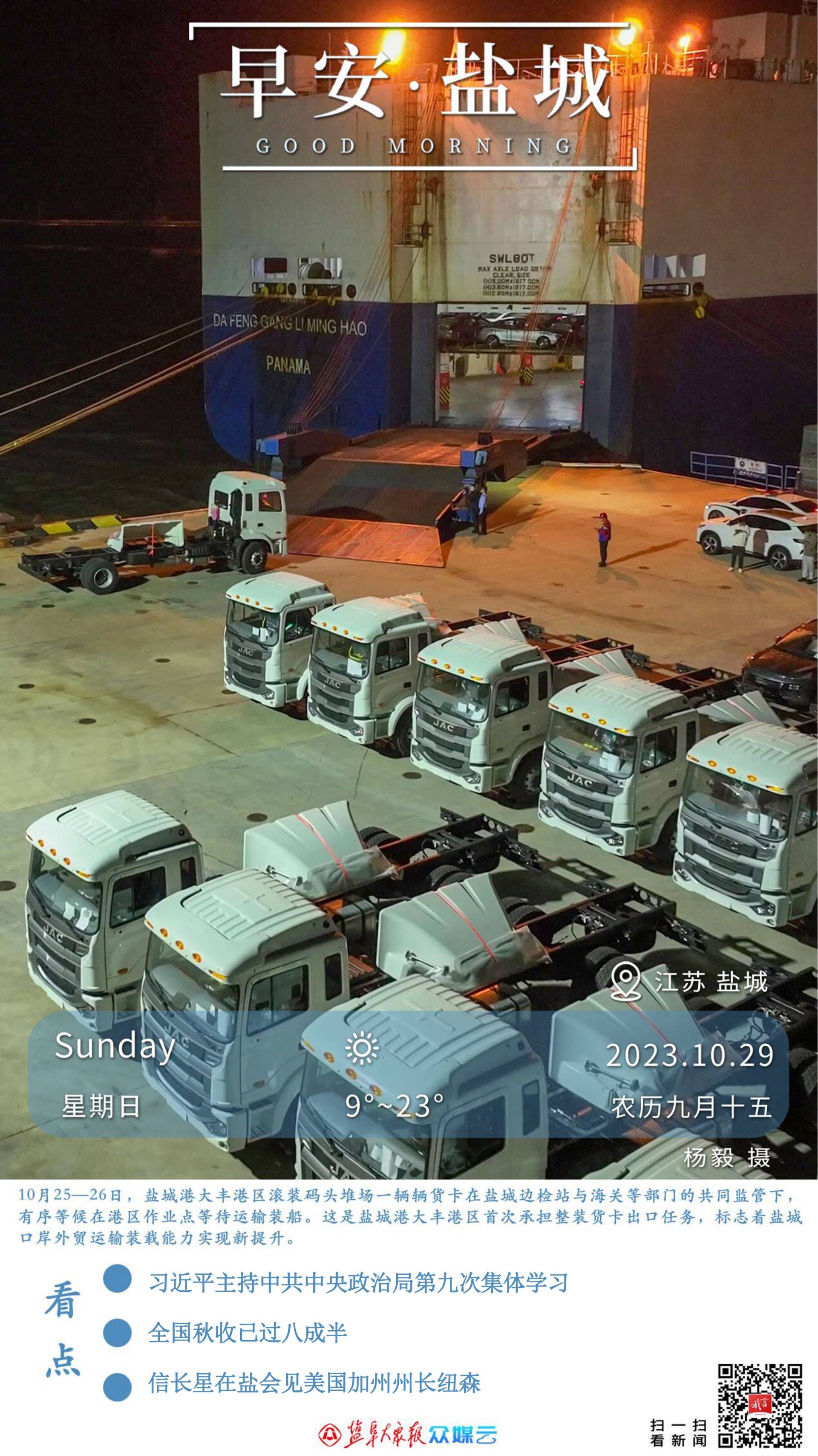 读者朋友,早上好!今天是2023年10月29日,星期日,癸卯年九月十五。今天晴到多云,偏南风3到4级。预计今天最高气温24到25℃。