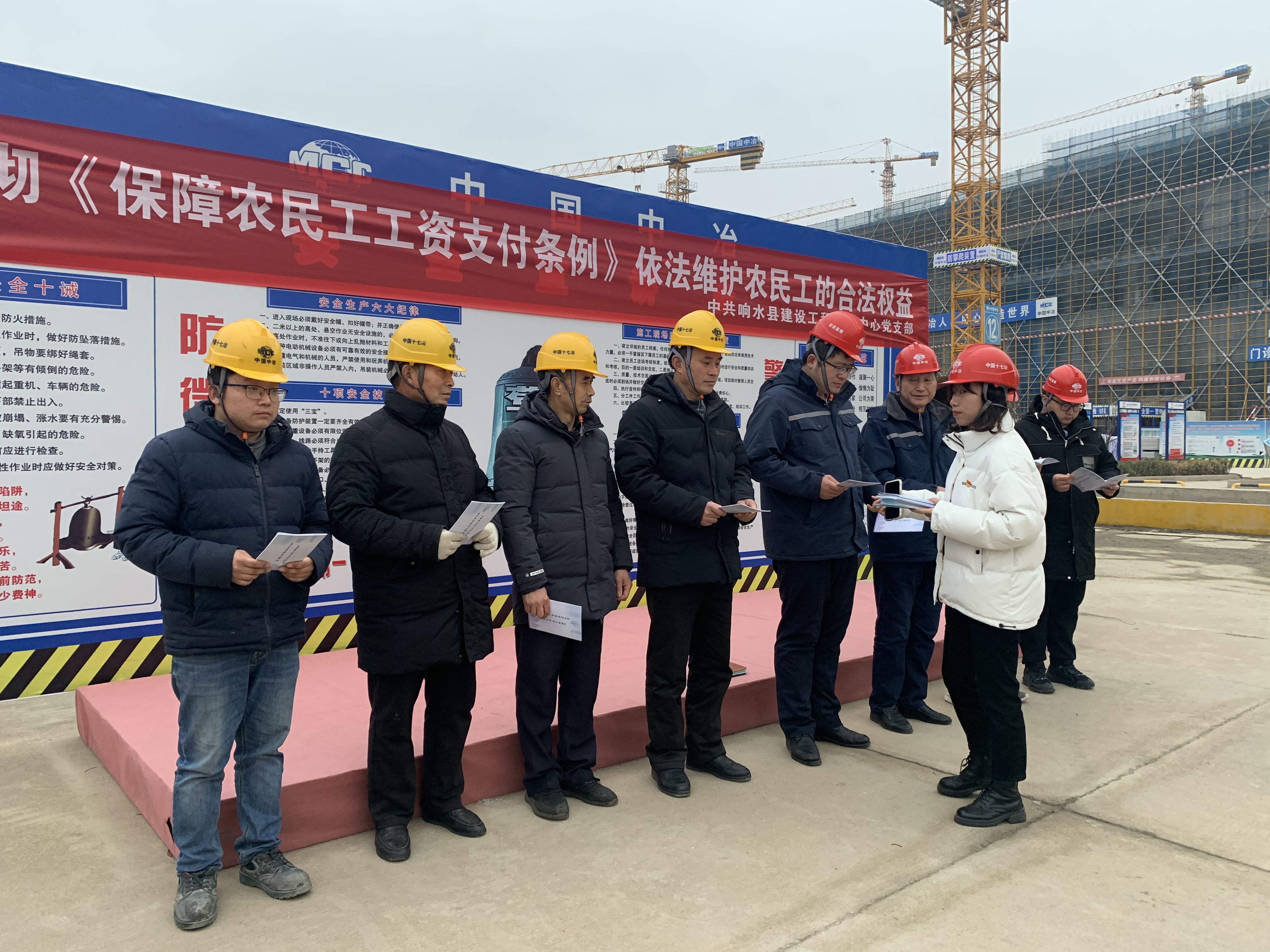 2月3日至2月9日,是第十七届“农民工学法活动周”。中心党支部组织党员走进建筑工地,开展“春暖农民工”活动,宣传党的二十大精神,更好地维护农民工特别是新就业形态劳动者合法权益,不断提高其办事依法、遇事找法、解决问题用法、化解矛盾靠法的法治素养。