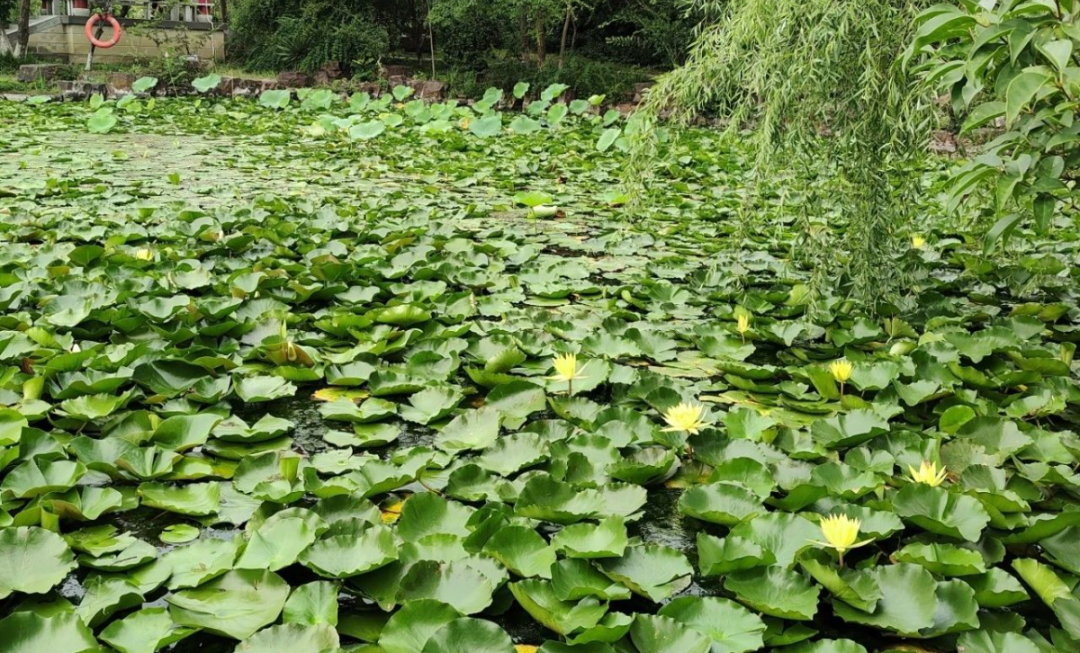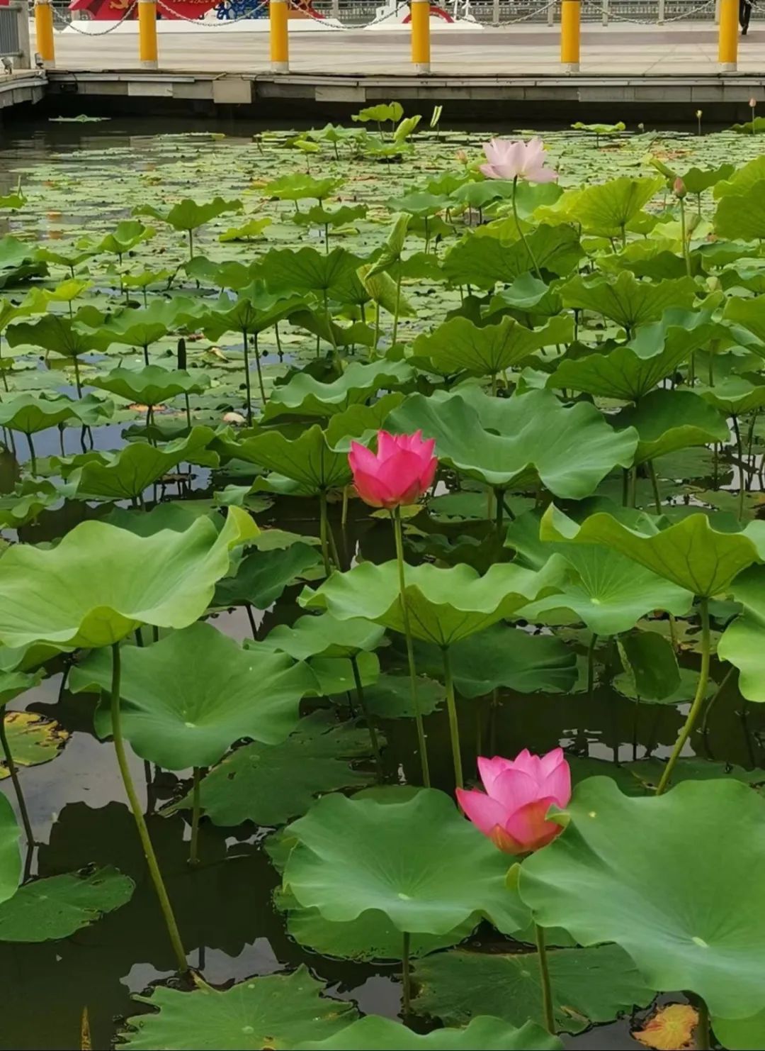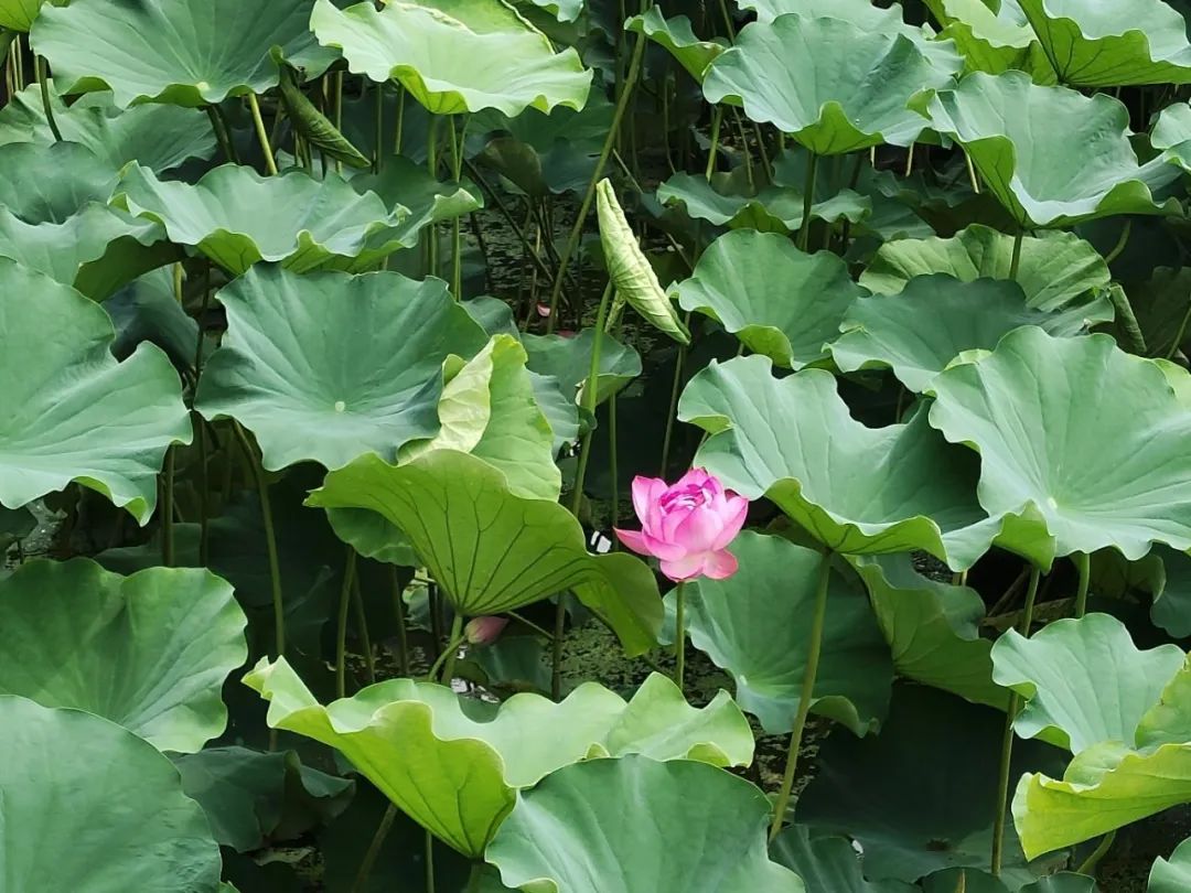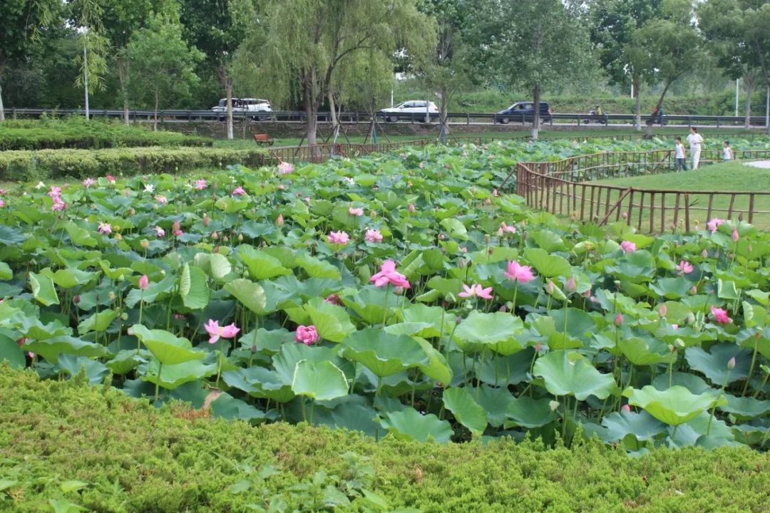 园林管理建议:荷花生长迅速,池中的水草也容易过度生长,需定期修剪枯黄的叶子,剪除残败花朵,清理杂草与浮萍,以保持水质清澈。