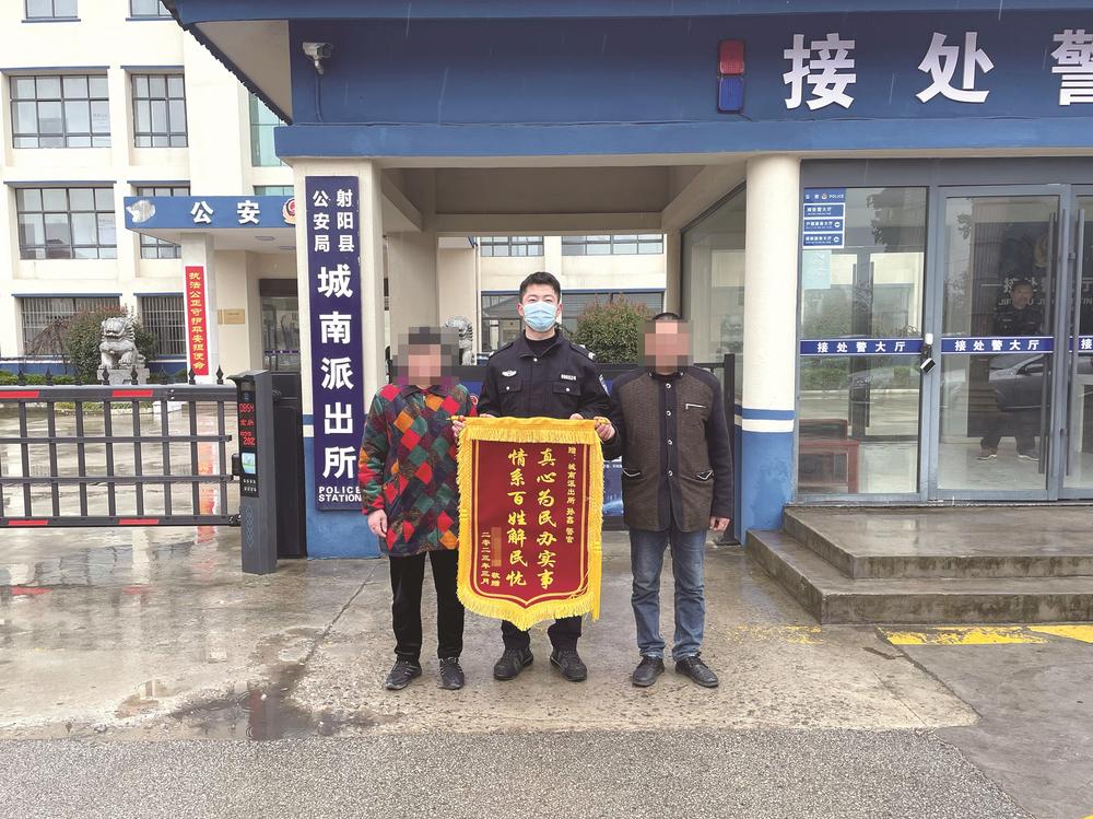 “谢谢警察同志,要不是有你们,我那钱就打水漂了……”收到退款的叶老爹激动不已,对民警再三道谢。日前,家住射阳县城的叶老爹特地带着一面书有“真心为民办实事 情系百姓解民忧”的鲜红锦旗,来到射阳县公安局城南派出所向民警孙鑫表示感谢。