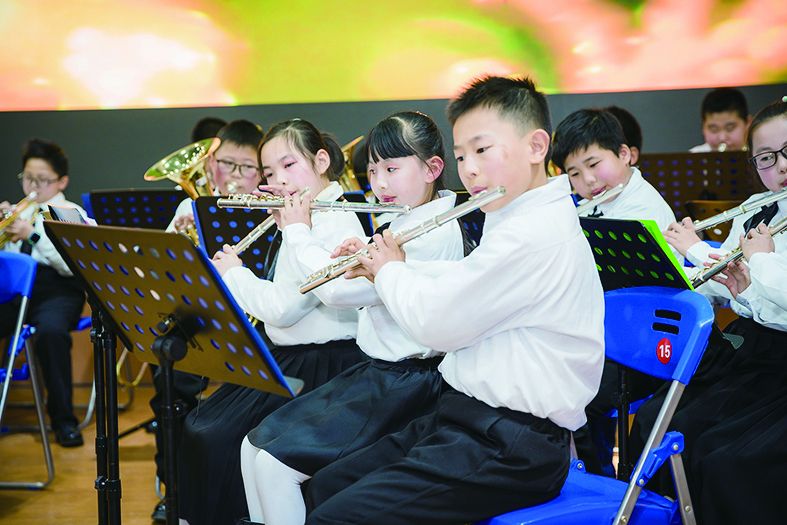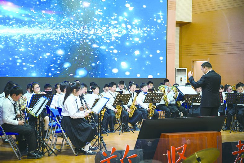 行。由该校学生组成的贤能管乐团,为现场的师生带来了他们辛