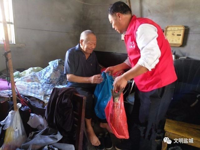 今天上午,爱心人士仇爱清走进亭湖区先锋街道东河村一组低保户许学元老爹家,送上鲜活鱼和光鸭。随后,仇爱清还向东河村400多名60岁以上老人以及困难户发放价值2万元的节日礼品。