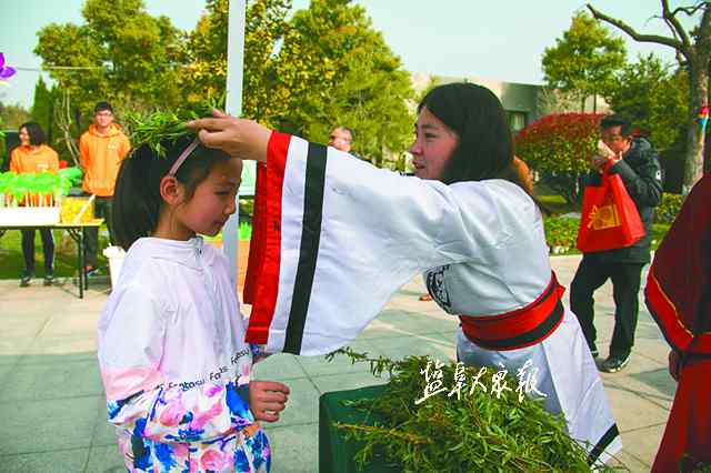 △福禄园公墓里,昨日举行传统活动,图为清明戴柳。