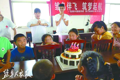 志愿者给孩子们准备了蛋糕与礼物,并与孩子们促膝畅谈,谈学习、谈理想、谈人生。许愿时,懵懂稚嫩的孩子们露出略带羞涩的表情,争先恐后地说着自己的理想:当一名宇航员、老师、科学家等。甜甜的蛋糕、温暖的集体让他们露出了久违的微笑。