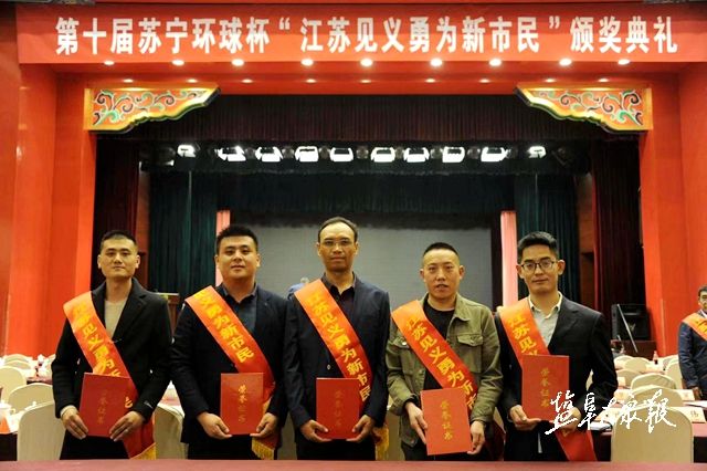 黄茂生(右二)和响水4名“新市民”在颁奖典礼上领奖。