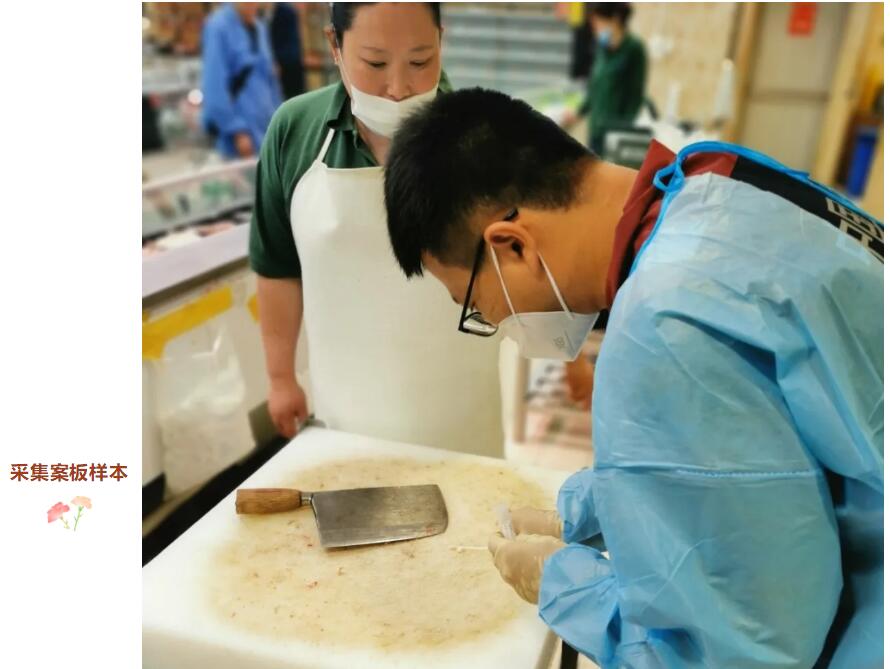 疾控专业技术人员分别采集了超市内摊位环境,如地面(地板)、案板、刀具、下水道口、下水道管壁、冷冻冰箱、海鲜水池、地漏、从业人员手套、工作围裙和市场内公共场所,仓库门把手等环境样本共228份,检测结果也均为阴性。