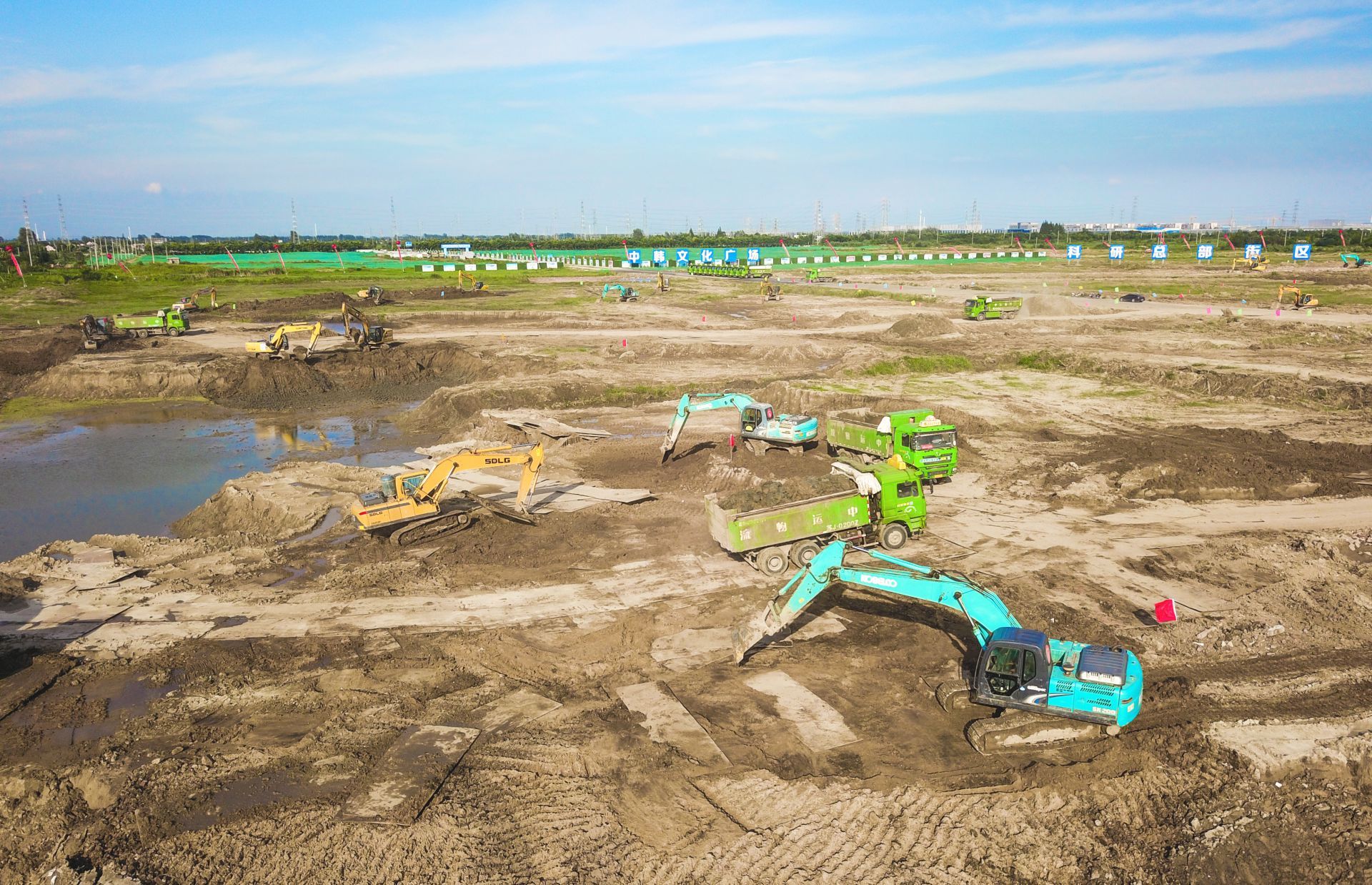 中韩文化广场水库是2020年韩风国际文化名城功能配套首开项目,为了把水利民生实事工程办好,打造韩风国际文化名城地标,世纪新城集团聚焦主战场、勇当主力军。该集团第一时间成立专班、制定专案、设置专岗、抽调专人,下属的项目公司担任主力,以坚定的决心和必胜的信心,立志把工程打造成政府放心、群众满意的精品工程。按照标段划分区域,结合天气等制约因素打好提前量,以9月底基本完成开挖为目标绘制横道图,倒排工期、顺排工序,将任务定量到天,将责任压实到人,实行清单化管理,形成以天保周、以周保月的落实链条,确保圆满完成任务。专班人员既当指挥员又当战斗员,扎根现场调度管理,针对夏季阵雨多发,有计划组织施工。