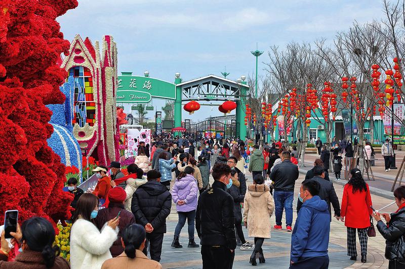 文旅融合供给足。节前,全市文旅部门备足“年货”,以景区、文化场馆为实景载体,组织包括欢乐广场、缤纷舞台、书香天地、文博展览、线上活动、旅游活动等6大板块,360场次活动,丰富就地过年文旅融合新体验。正月初一,荷兰花海500万株郁金香伸展着妖娆身姿,吸引着慕名而来的赏花人们。东台西溪《仙·凡》沉浸式街巷演艺带领大家穿越千年,引来阵阵掌声。黄海森林公园“NEW森活集”开街,潮趣街区亮相,灵动活泼的“小精灵”和玩偶公仔让春节趣味十足。大纵湖东晋水城用光影交织的梦境体验,意境别样辞旧迎新。大洋湾唐渎里开街仪式人潮涌动,精彩绝伦的唐风鼓舞演绎震撼人心。