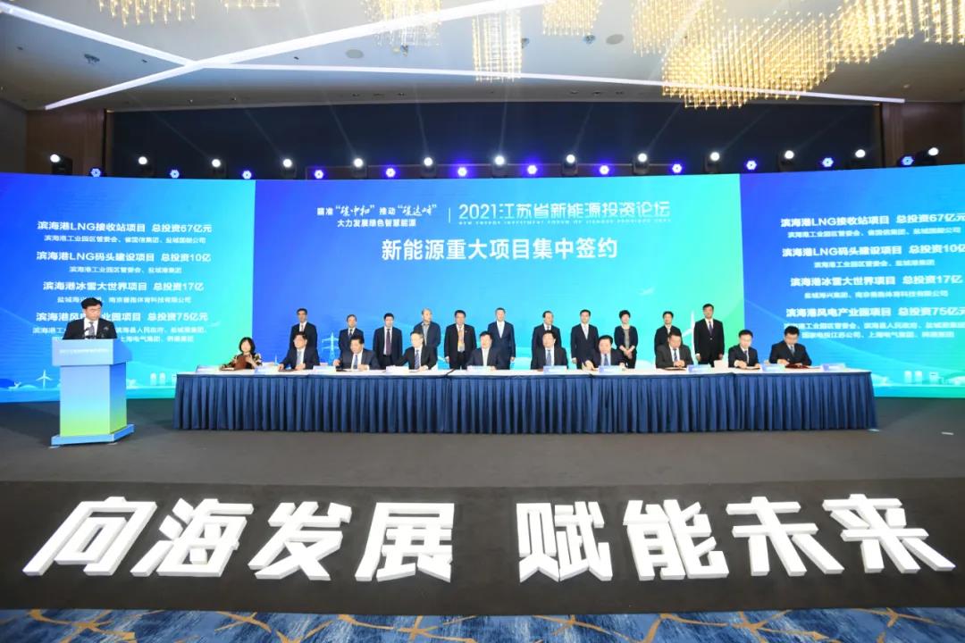 谢正义在致辞中称赞盐城在全省新能源产业发展中走在了前列、作出了示范。他说,“十四五”期间,江苏要规划建设盐城等三大综合能源基地,集中打造盐城等两大海上风电基地。省国信集团作为省属主要能源企业,坚决落实省政府部署要求,积极参与滨海港综合能源基地建设,全力以赴做好资金、资源投入,坚持高起点定位、高标准规划、高效率实施,与有关各方通力合作,确保项目早日核准、早日开工、早日投产。