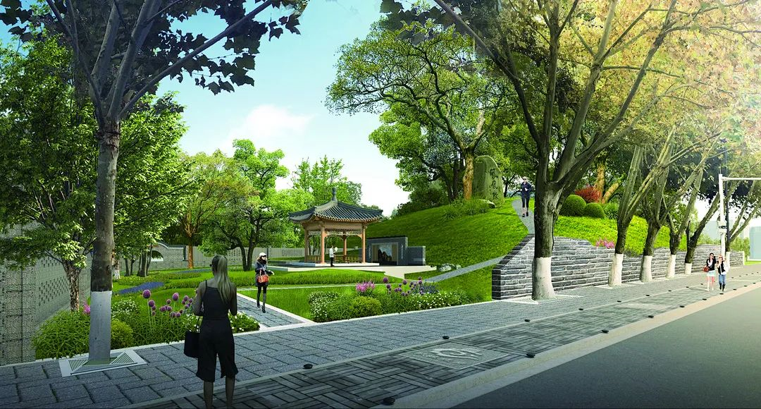 瓢城绿廊是市委、市政府为民办实事项目,是我市聚焦解决群众反映突出的问题,通过加快老城区微更新,提升城市环境品质,重塑城市风貌特色,实现城市发展平衡与协调的重要内容。项目结合建军路商圈业态提升,按照利用行道树四季色彩固化瓢城城墙记忆,提升沿线生态环境,挖掘特色文化内涵,打造宜人宜居的居住环境,因地制宜建设多样的林荫空间,围绕历史与现代的演绎、生态与文化的互动留住瓢城记忆。