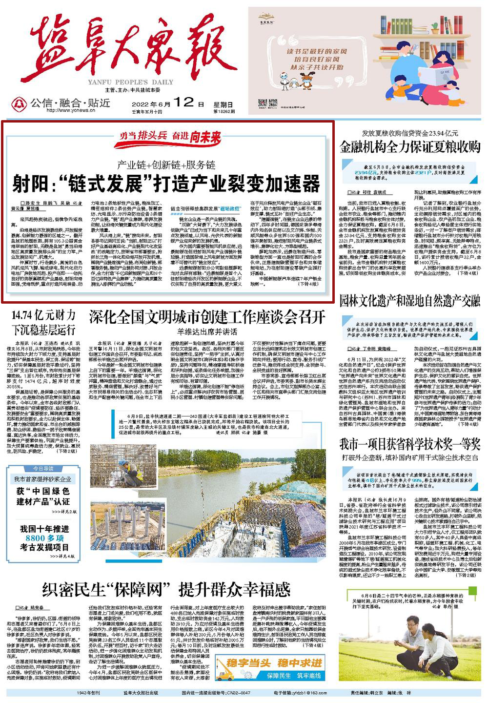 仲夏时节,行走鹤乡,高耸的白色风机迎风飞舞、输送绿电,现代化动力电池厂房拔地而起、投产在即……依托良好的资源禀赋和产业基础,射阳向海图强,凭海筑梦,重点打造风电装备、动力电池2条地标性产业链,粮油加工、精密结构件2条优势产业链,智慧家纺、光电显示、水污染防治设备3条潜力产业链,“链”起产业集群,澎湃发展动能,让沿海关键变量成为现代化建设最大增量。