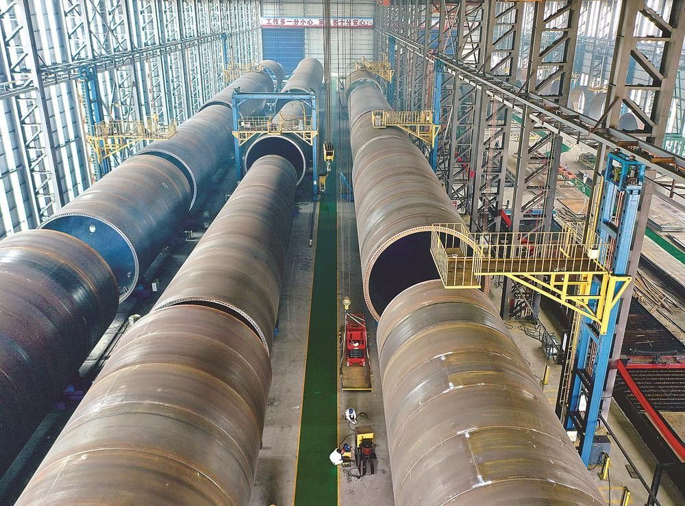 该项目由深圳A股上市企业江苏海力风电设备科技股份有限公司投资建设,总投资5亿元,新建专用生产厂房及附属用房3万多平方米,堆场4万多平方米,购置全套下料、成型、装配、组对、焊接、喷砂喷涂防腐生产线及相关检验检测设备,形成年产200台套海上风机塔筒、150台套海上风机单桩基础、导管架基础承载平台的生产能力。项目2021年8月开工建设,2022年10月份竣工运营。全面投产后,年产能可达到8万吨,实现年销售收入超10亿元。