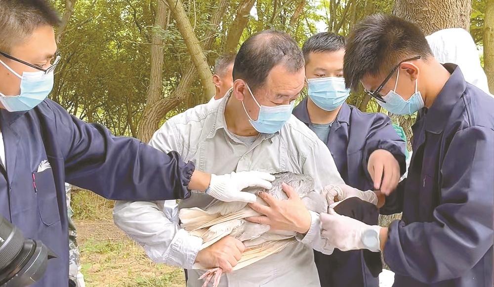 为朱鹮佩戴环志。 陈亚芹 记者 祁兆胜 赵亮 摄