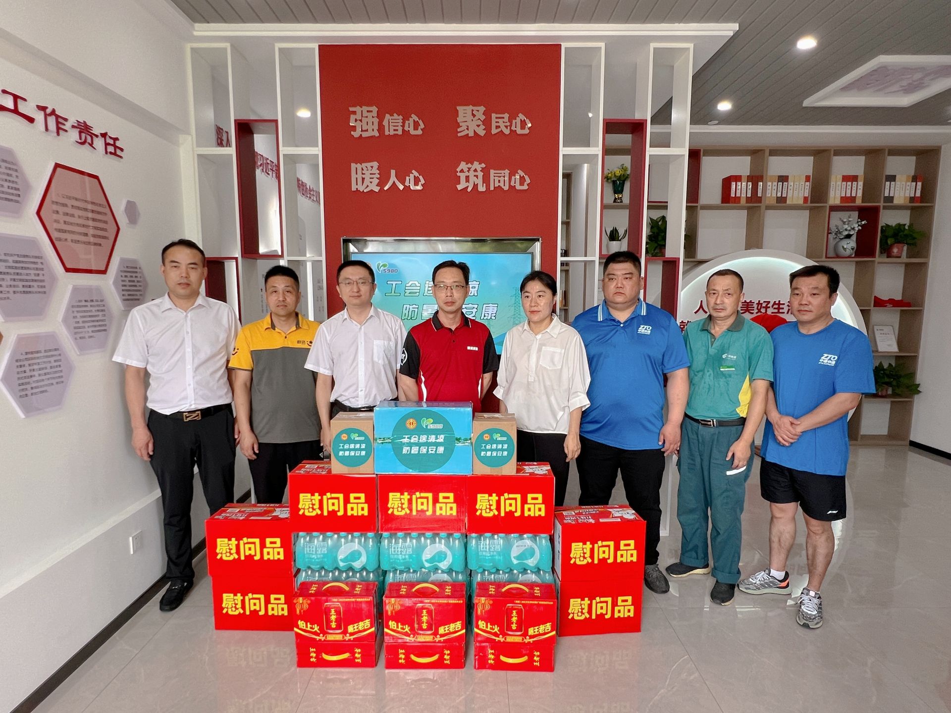 揭牌仪式结束后,为快递员等户外劳动者送去了矿泉水、方便面等慰问品。