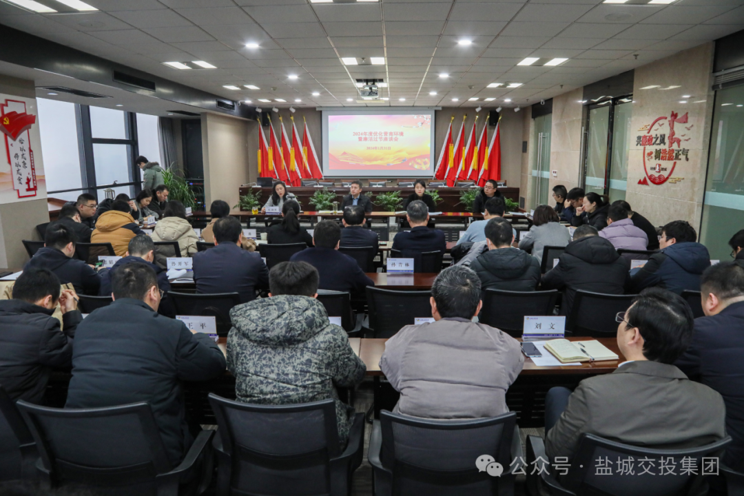 1月31日上午,派驻盐城交投集团纪检监察组组织召开驻在企业2024年度优化营商环境暨廉洁过节座谈会,进一步了解优化营商环境推进工作落实情况,听取进一步改善营商环境工作的意见和建议,共同推动驻在企业可持续健康发展,同时按照节前工作部署,派驻该集团纪检监察组组长、党委委员徐林春在会上与驻在企业权力部门负责人、合作单位负责人进行了一次节前集体廉政约谈。