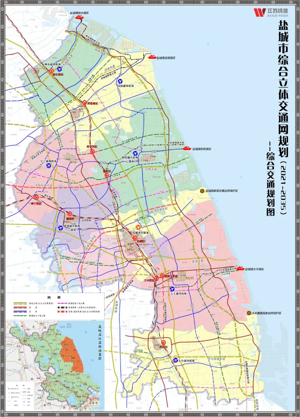 为贯彻落实加快建设交通强国和交通运输现代化示范区战略部署,推动盐城交通高质量可持续发展,日前,《盐城市综合立体交通网规划(2021—2035年)》(以下简称《规划》)发布,这是全省率先以市级政府名义出台实施的交通网规划。