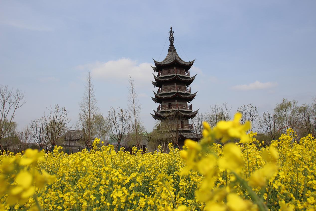 人间四月芳菲尽。清明时节,伍佑珠溪古镇已建成的文庙、魁星阁在蓝天、白云和金黄的油菜花衬托下,更加显得古色古香,成为不少游客的打卡地。(摄影:陈卫江)