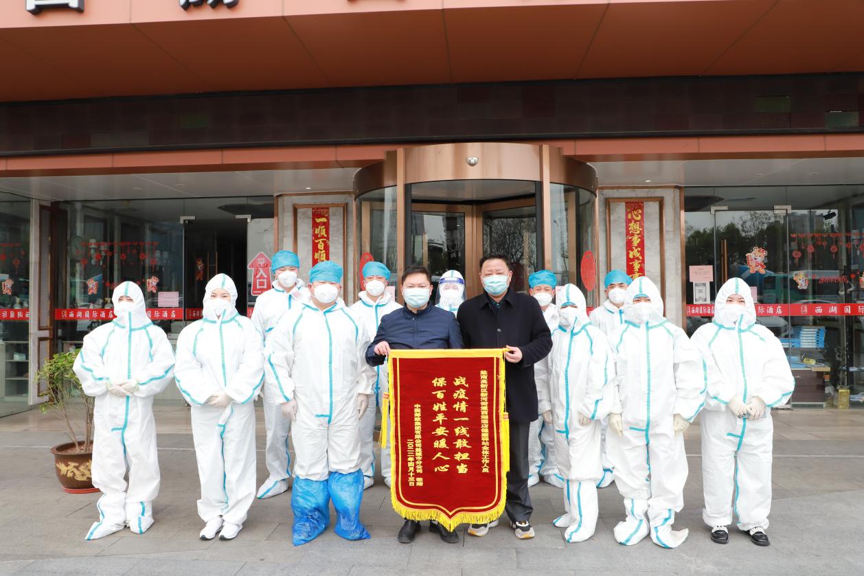 4月17日下午,中国邮政集团有限公司盐城市分公司副经理叶青向盐南高新区新河街道西湖酒店健康驿站赠送一面锦旗,叶青紧紧握着新河街道宣传委员陈德天的手感激地说:“感谢健康驿站新河街道工作人员热情周到、优质规范的服务,我们隔离人员感到很温暖。”