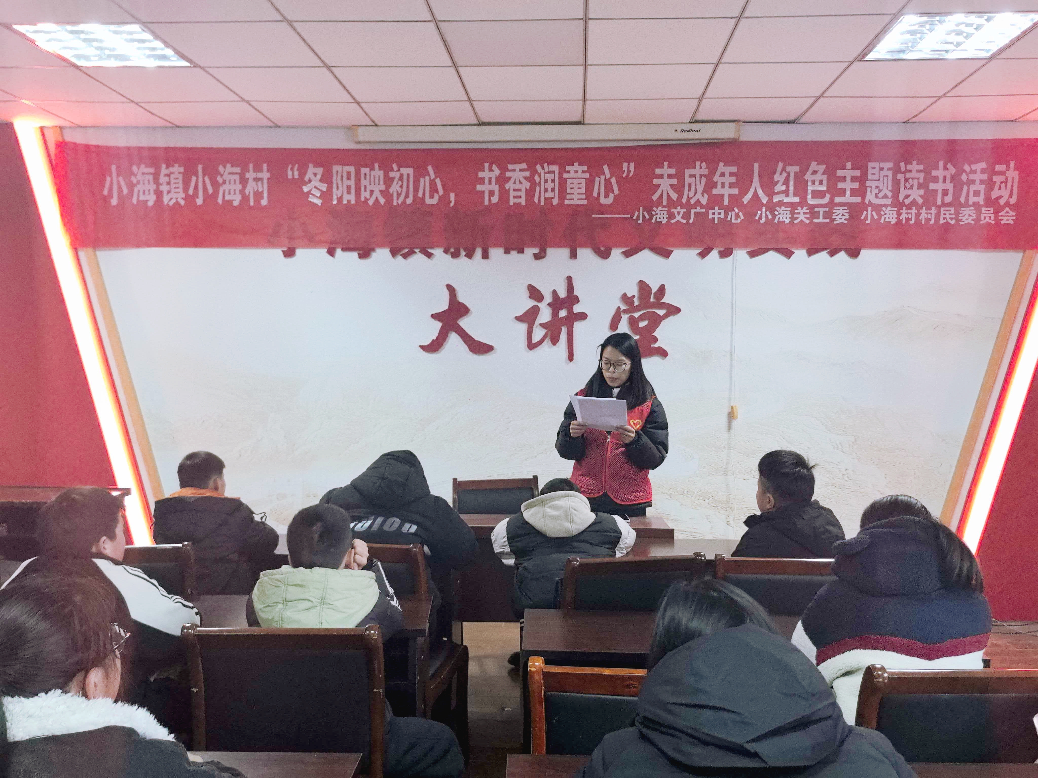 2月10日下午,大丰区小海镇小海村新时代文明实践站大讲堂内,一场以“冬阳映初心,书香润童心”为主题的未成年人红色读书活动温情开幕。活动由小海镇文广中心、小海镇关工委、小海村村民委员会联合举办,旨在通过红色经典阅读,厚植未成年人爱国情怀,让红色基因代代相传。