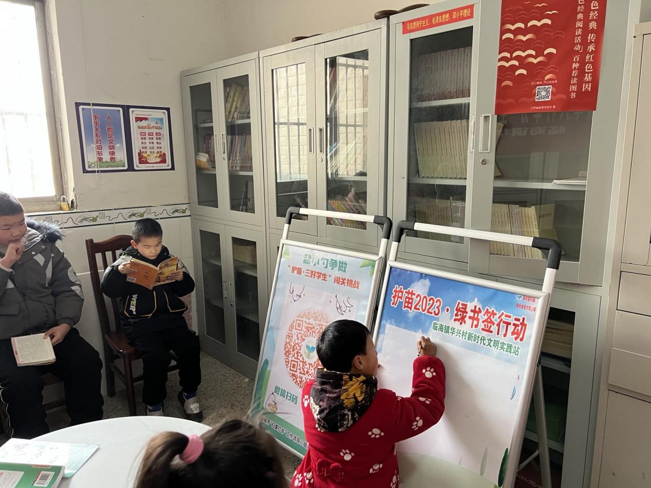 为了丰富同学们的寒假生活,培养孩子的阅读习惯,2月3日下午,射阳县临海镇华兴村新时代文明实践站组织开展“全民阅读 春风行动”护苗绿书签活动。