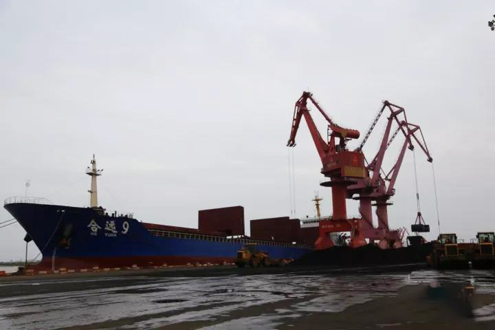 码头正在卸载生产用煤
