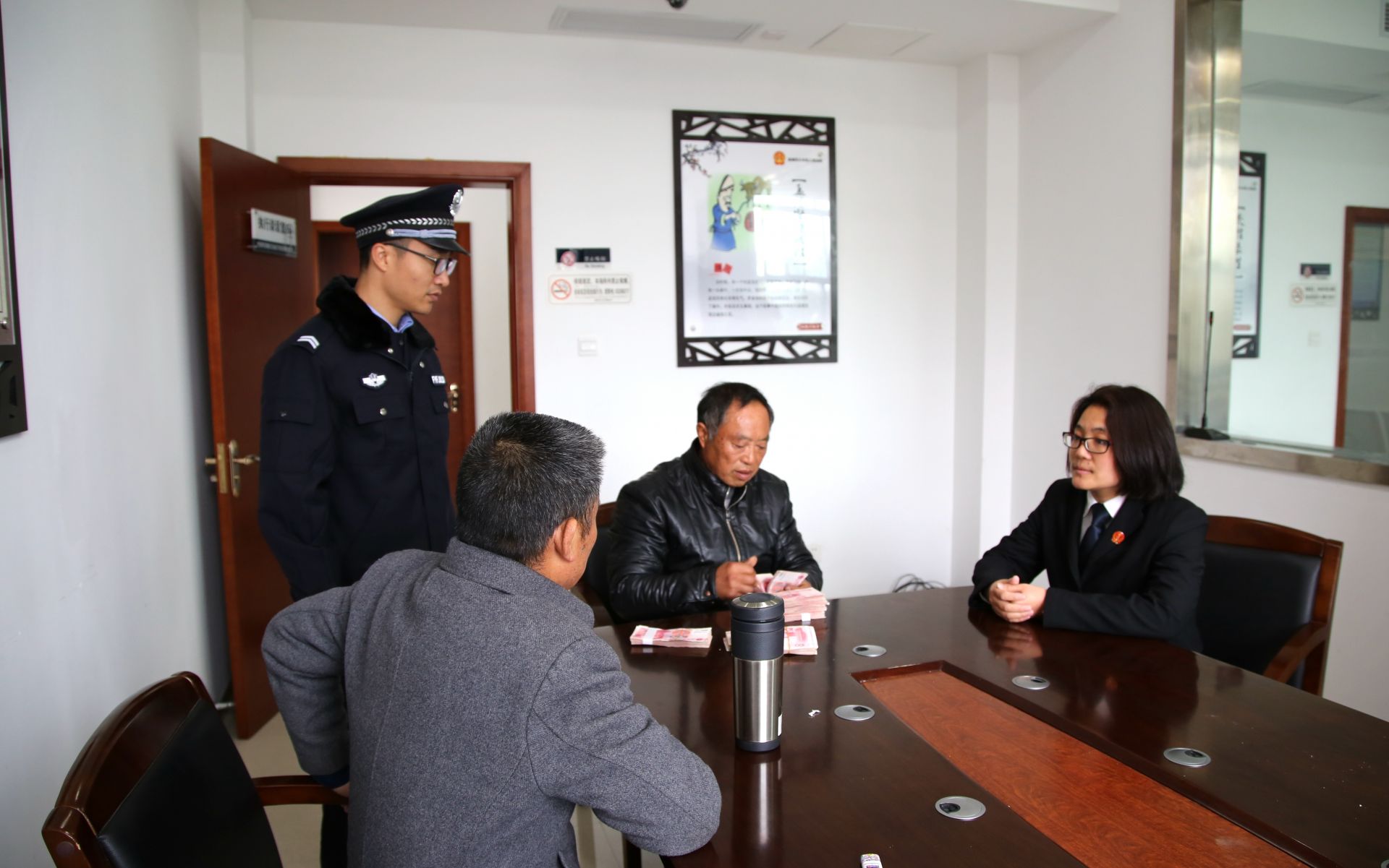 近年来,大丰法院执行局切实践行司法为民宗旨,不断加大涉民生案件执行力度,坚持打好日常强化执行与集中执行相结合的系列“组合拳”,着力解决群众反映强烈、与百姓利益息息相关的涉民生案件执行难的突出问题,最大限度维护申请执行人的合法权益。图为经过该院执行法官多方努力,终于将10万元的执行款交到申请人手中。