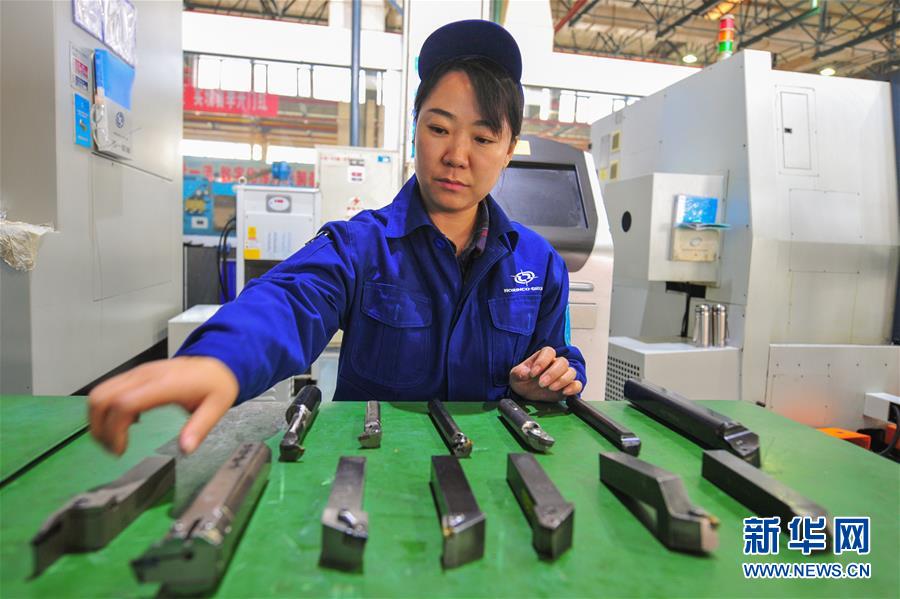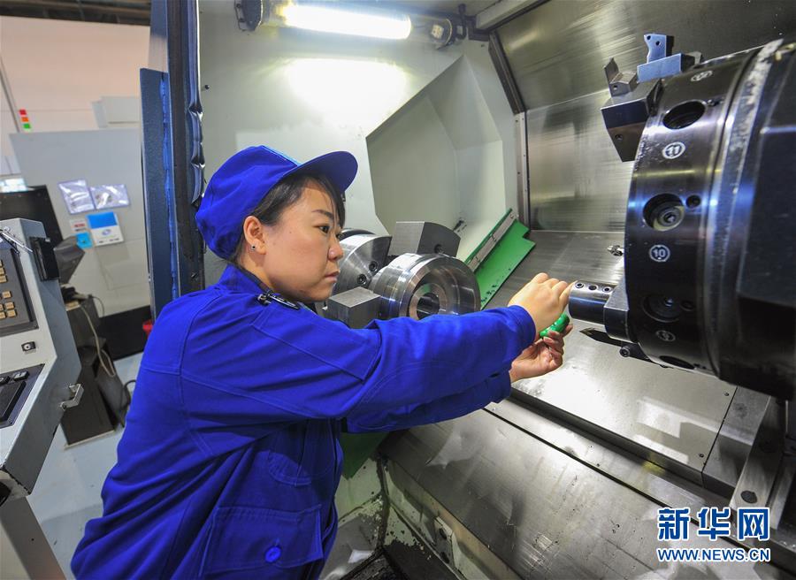 在内蒙古第一机械集团有限公司第四分公司,赵晶在为数控机床更换精加工所用的刀片(3月5日摄)。