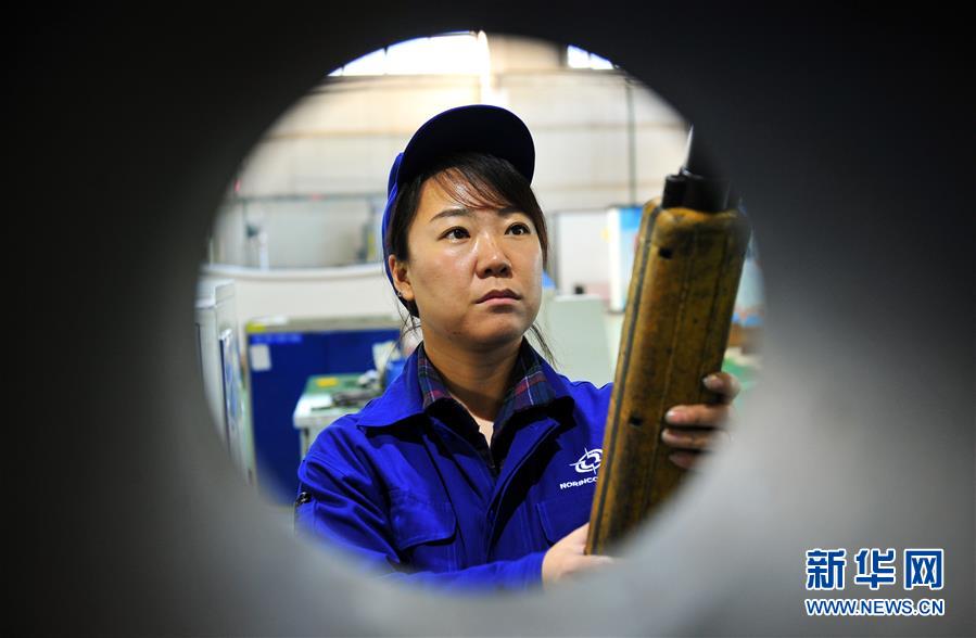 在内蒙古第一机械集团有限公司第四分公司,赵晶在车间内调试设备(3月5日摄)。
