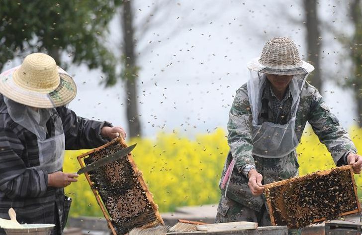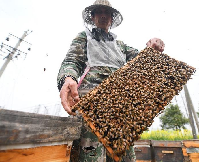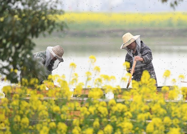 添加图说3月14日,来自安徽的蜂农在湖北省潜江市龙湾镇的油菜花地里放养蜜蜂。早春时节,湖北省潜江市20多万亩油菜花长势好、流蜜足,来自全国各地的400多名养蜂专业户在此收获“甜蜜”。 新华社 发(吴燕军 摄)