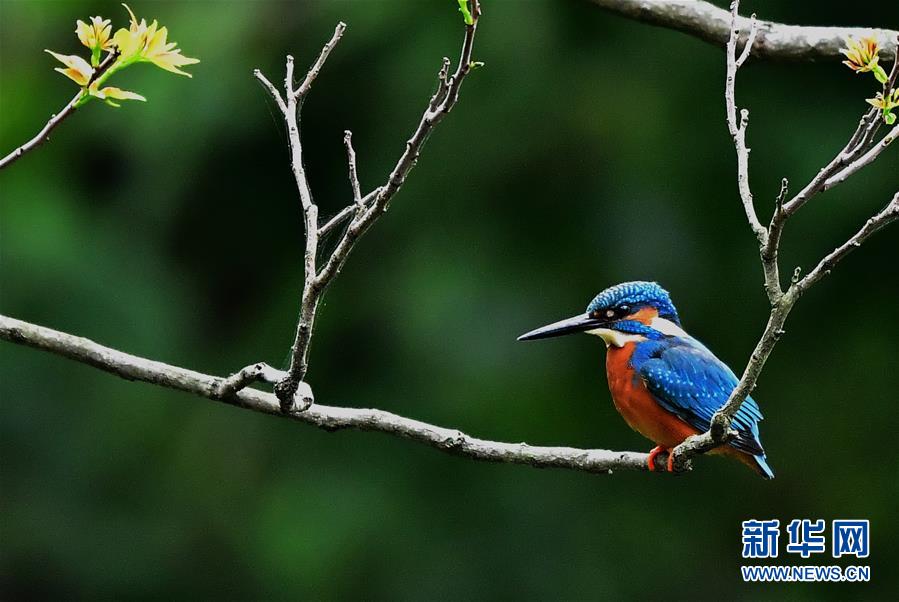 一只翠鸟在福州西湖公园的重阳木树上停歇(3月18日摄)。福州西湖公园墨池的湖心小岛上,有4棵年岁久远的重阳木树。初春时节,鸟儿在苔藓遍布的树枝嬉戏、停歇,引得市民驻足流连。 新华社记者梅永存 摄