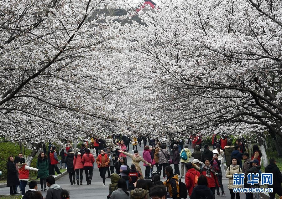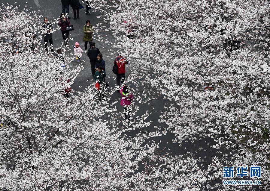3月21日,市民和学生在校园观赏樱花。 新华社记者 孙参 摄
