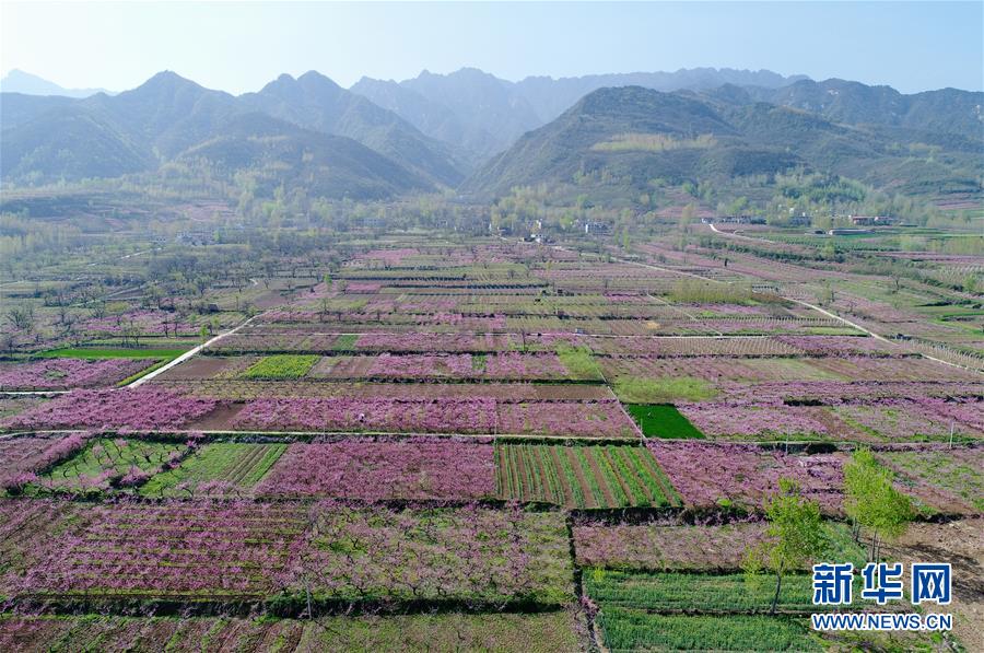 这是长安区王莽街道清北村绽放的桃花(3月28日无人机航拍)。当日,“2018第二届中国长安国际赏花季”系列活动之一的“第九届王莽桃花节”在陕西省西安市长安区王莽街道拉开帷幕,秦岭终南山下竞相绽放的桃花吸引游人前来观赏。新华社记者 邵瑞 摄