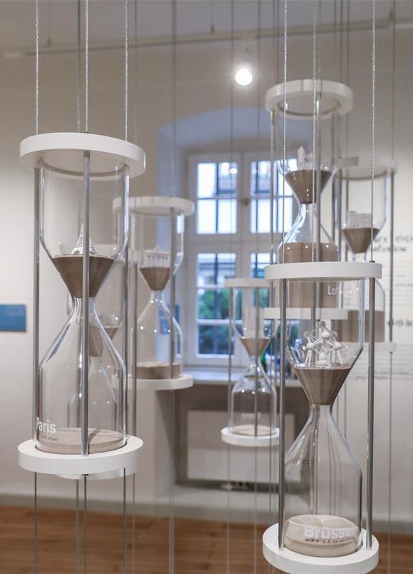 这是5月3日在德国特里尔马克思故居纪念馆内拍摄的展示马克思一生居留城市的沙漏。沙漏内沙子越多表示其在该城市停留时间越长。新华社记者 单宇琦 摄