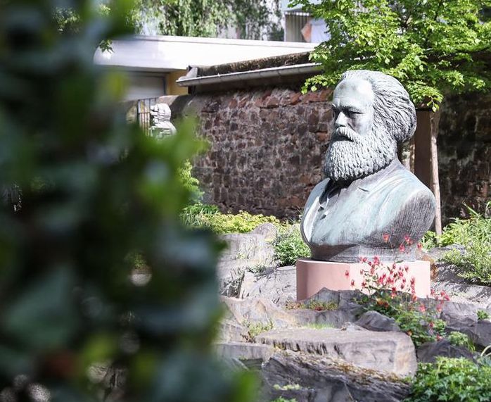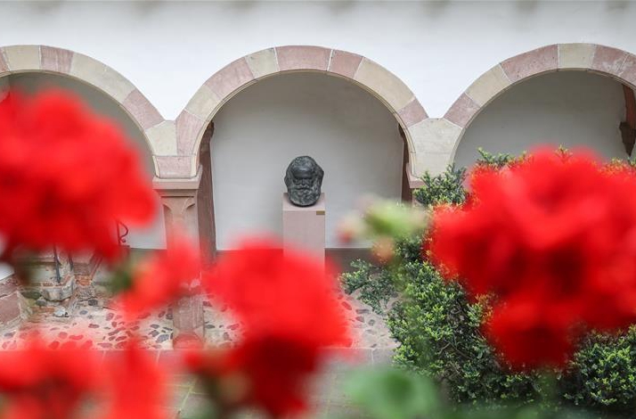 这是5月3日在德国特里尔马克思故居纪念馆院内拍摄的马克思雕像。马克思故居纪念馆位于德国特里尔布吕肯街10号,始建于1727年。1818年5月5日,马克思在此处出生。 新华社记者 单宇琦 摄