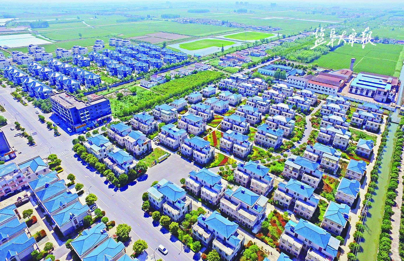 5月24日,俯瞰郭猛镇杨侍村集中居住点,连片的村民新居整齐划一,绿树成荫和笔直通畅的水泥村道构成一幅美丽的乡村画卷。