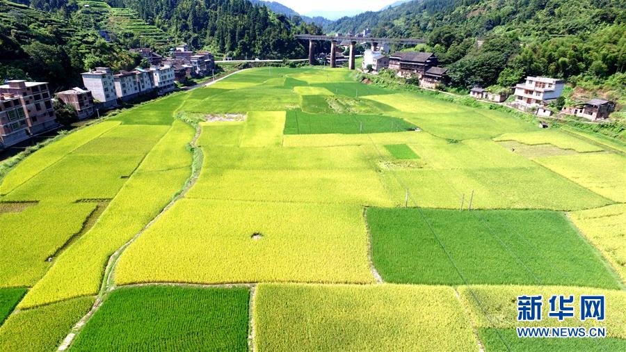 这是8月9日拍摄的广西三江侗族自治县八江镇平善村稻田(无人机拍摄)。 新华社发(吴练勋 摄)