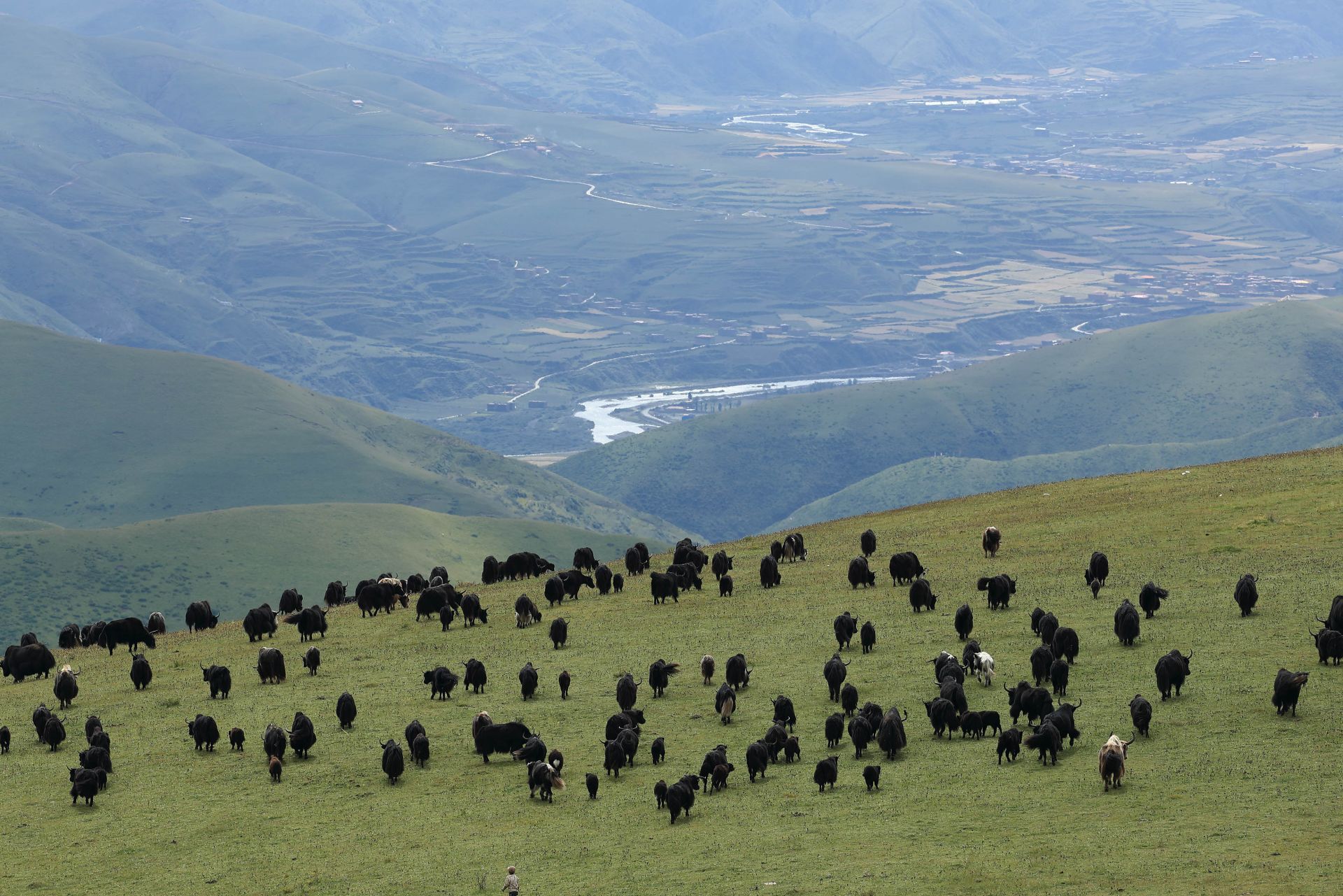 从阿诗玛山俯瞰则曲河南木达镇段(8月20日摄)。新华社记者 江宏景 摄