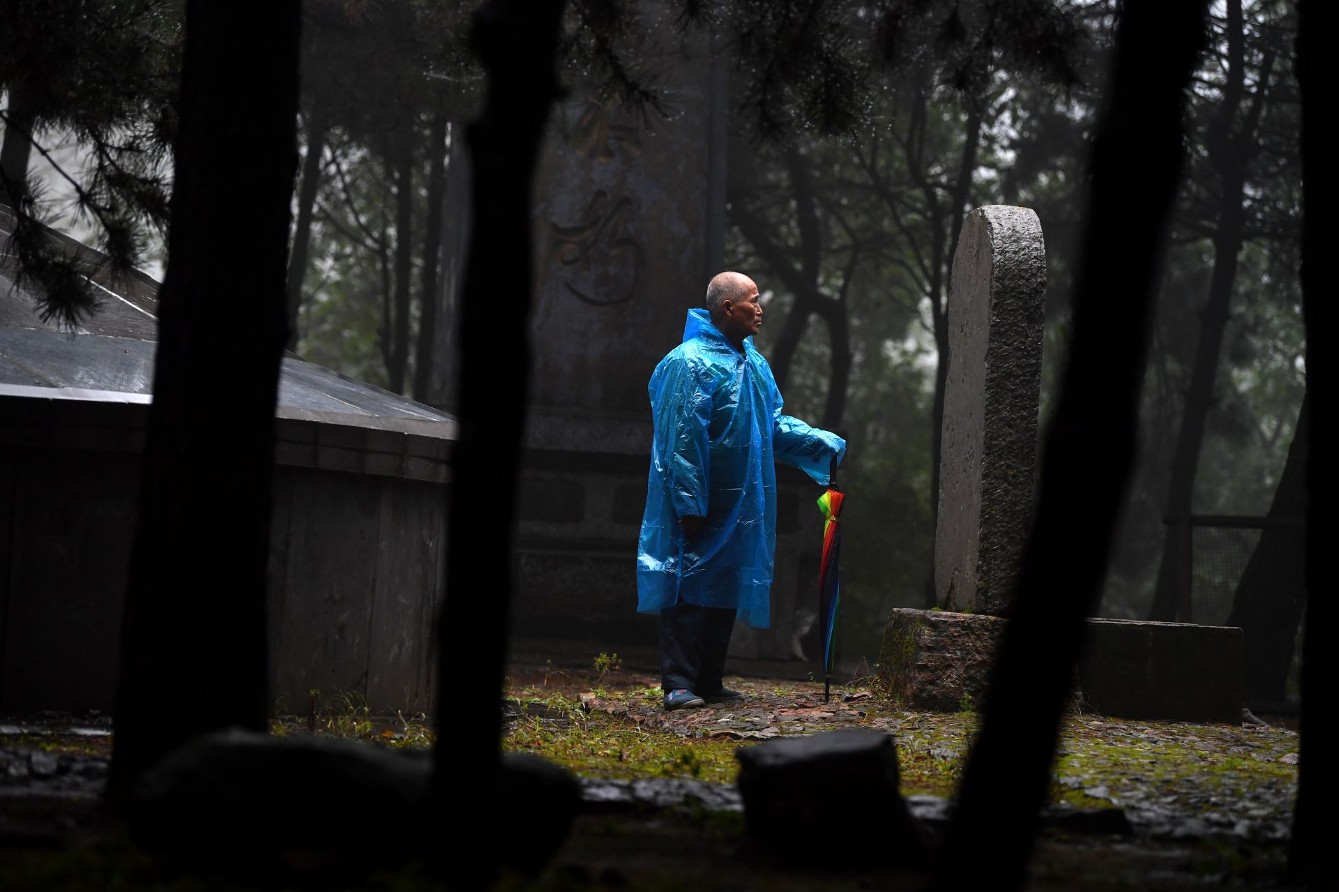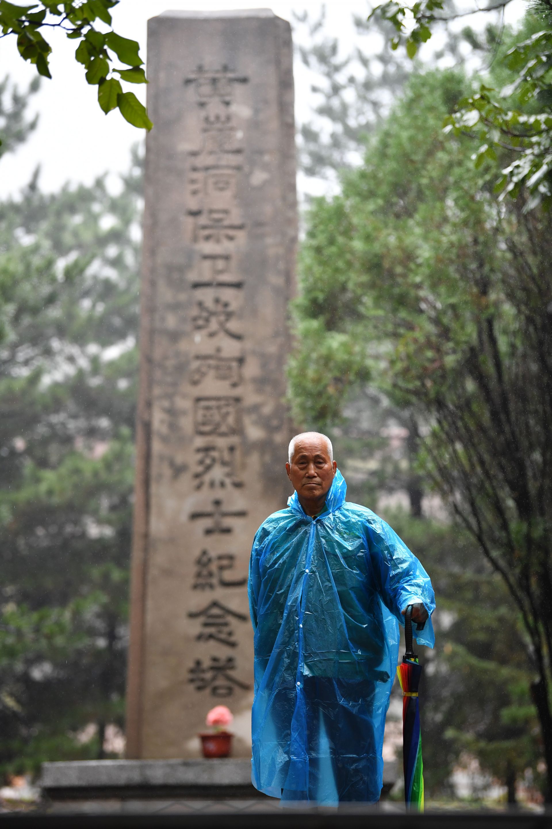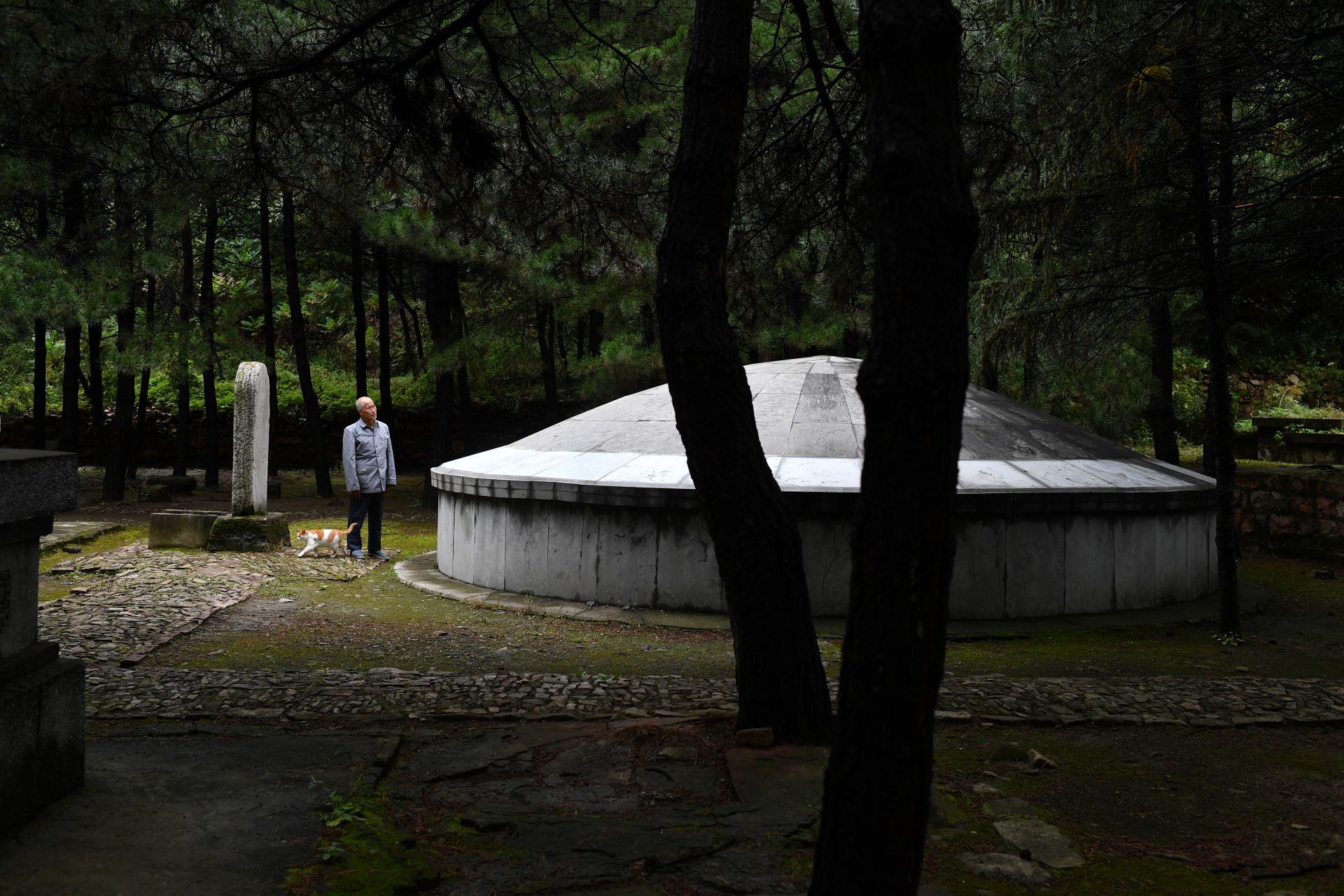在黄崖洞烈士陵园,赵乃堂在清扫落叶(9月20日无人机拍摄)。 巍巍太行山上,庄严的黄崖洞烈士陵园里,44位烈士长眠于此。 一位老人,一间老屋,27个春秋,山西省长治市黎城县岩头岭村73岁的赵乃堂默默守护着神圣的烈士墓。 身为土生土长的黎城人,赵乃堂从小就知道黄崖洞兵工厂和黄崖洞保卫战的战斗故事。抗日战争年代,黄崖洞兵工厂是八路军根据地创建最早、规模最大的兵工基地。著名的黄崖洞保卫战就发生在这里。黄崖洞保卫战时,赵乃堂的父亲为八路军运送粮食、打扫战场,目睹了八路军战士的英勇无畏。赵乃堂从小就听父亲讲黄崖洞的故事,深知现在幸福生活的来之不易,是先烈用鲜血与生命换来的。 长大后,赵乃堂参加训练成为民兵,由于表现突出,还担任了村里的民兵连长。后来,赵乃堂在林场、铁厂工作时,经常上山到烈士墓前祭拜,看到当年的兵工厂遗址和烈士墓,赵乃堂决心为英雄们做些什么。1991年,赵乃堂来到黄崖洞烈士陵园,守护英灵。这一守,就是27年。新华社记者 詹彦 摄