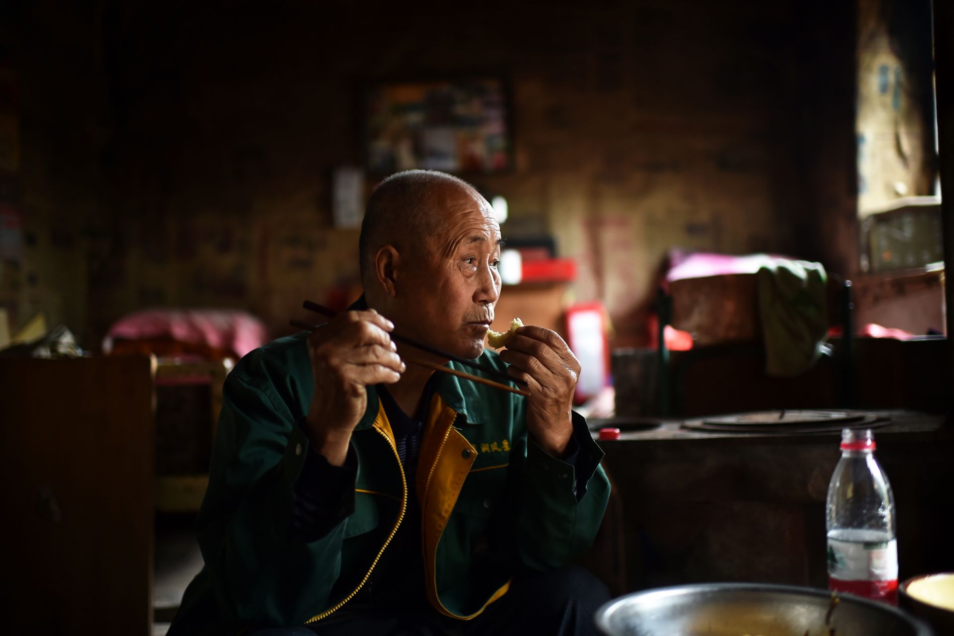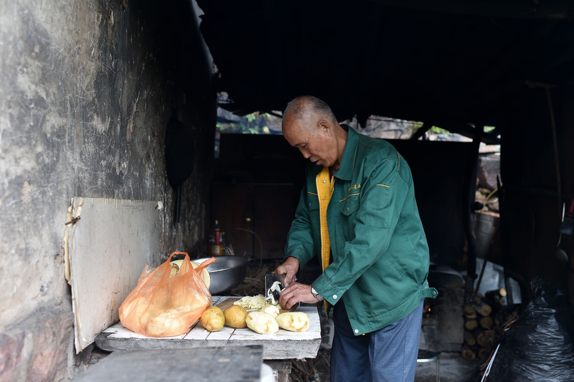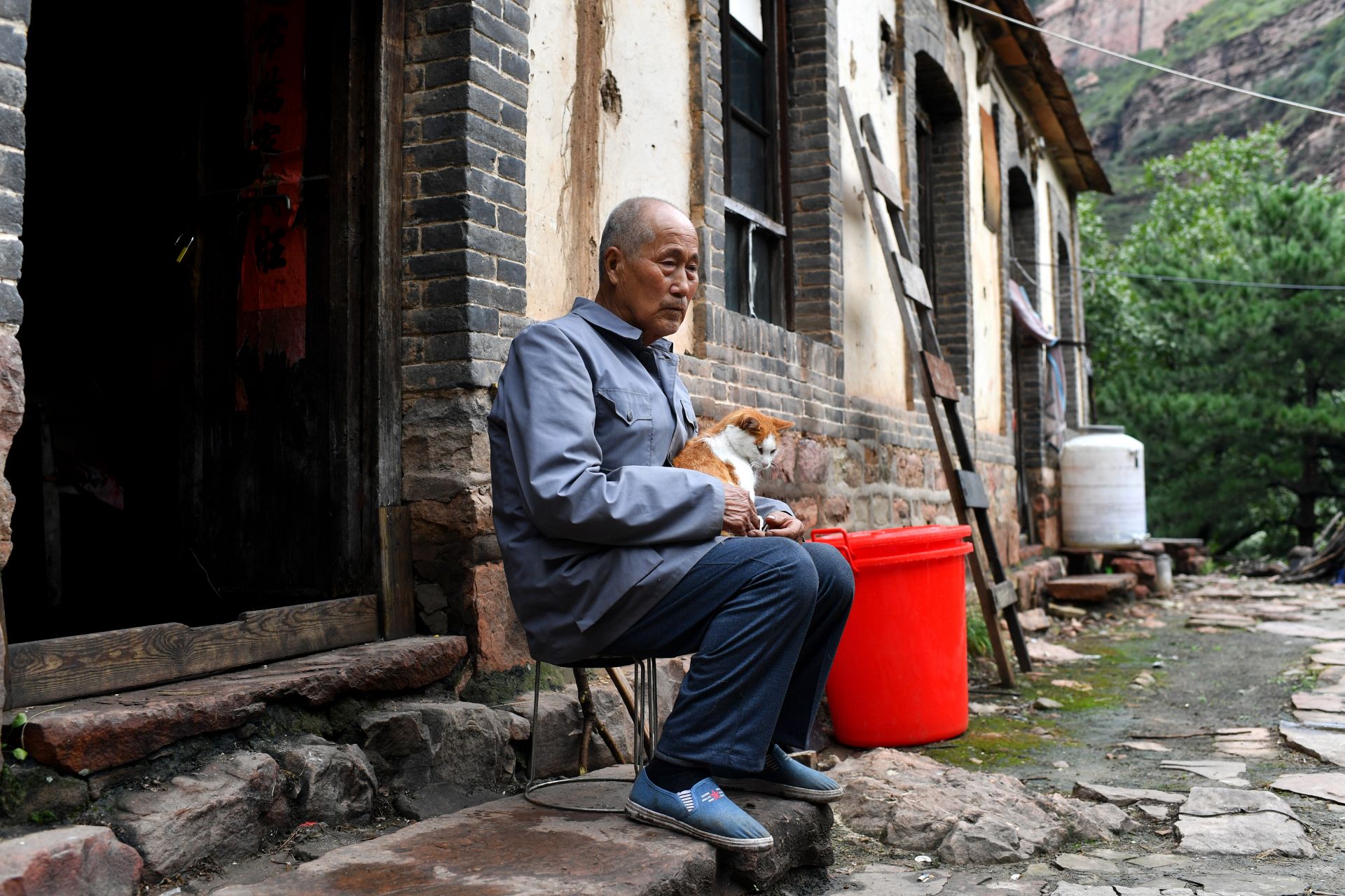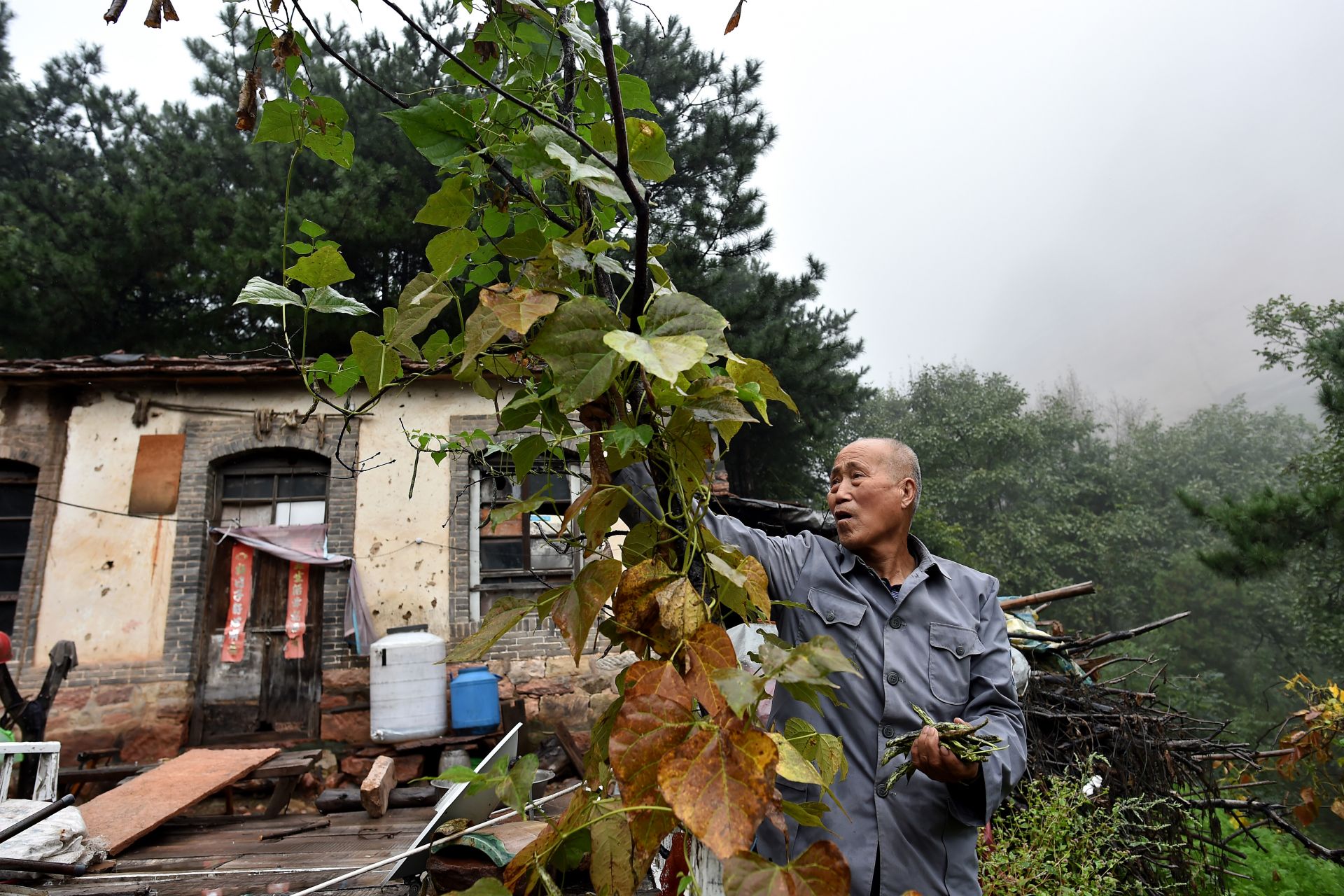 在黄崖洞烈士陵园,赵乃堂在清扫落叶(9月20日无人机拍摄)。 巍巍太行山上,庄严的黄崖洞烈士陵园里,44位烈士长眠于此。 一位老人,一间老屋,27个春秋,山西省长治市黎城县岩头岭村73岁的赵乃堂默默守护着神圣的烈士墓。 身为土生土长的黎城人,赵乃堂从小就知道黄崖洞兵工厂和黄崖洞保卫战的战斗故事。抗日战争年代,黄崖洞兵工厂是八路军根据地创建最早、规模最大的兵工基地。著名的黄崖洞保卫战就发生在这里。黄崖洞保卫战时,赵乃堂的父亲为八路军运送粮食、打扫战场,目睹了八路军战士的英勇无畏。赵乃堂从小就听父亲讲黄崖洞的故事,深知现在幸福生活的来之不易,是先烈用鲜血与生命换来的。 长大后,赵乃堂参加训练成为民兵,由于表现突出,还担任了村里的民兵连长。后来,赵乃堂在林场、铁厂工作时,经常上山到烈士墓前祭拜,看到当年的兵工厂遗址和烈士墓,赵乃堂决心为英雄们做些什么。1991年,赵乃堂来到黄崖洞烈士陵园,守护英灵。这一守,就是27年。新华社记者 詹彦 摄