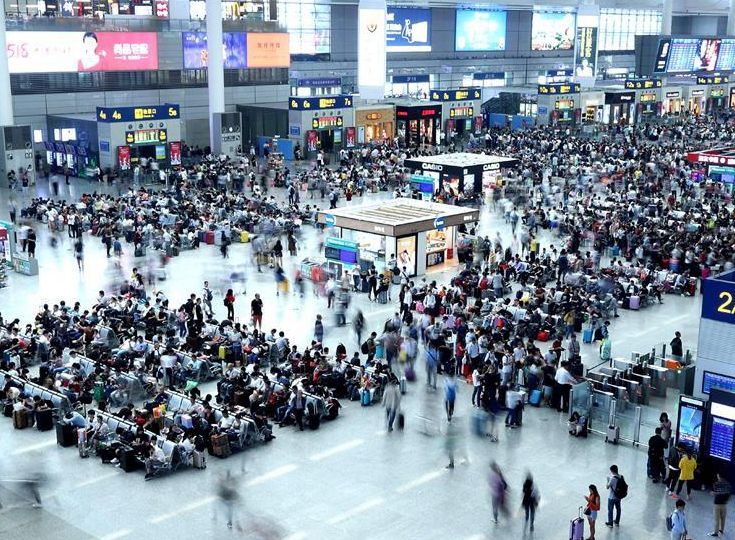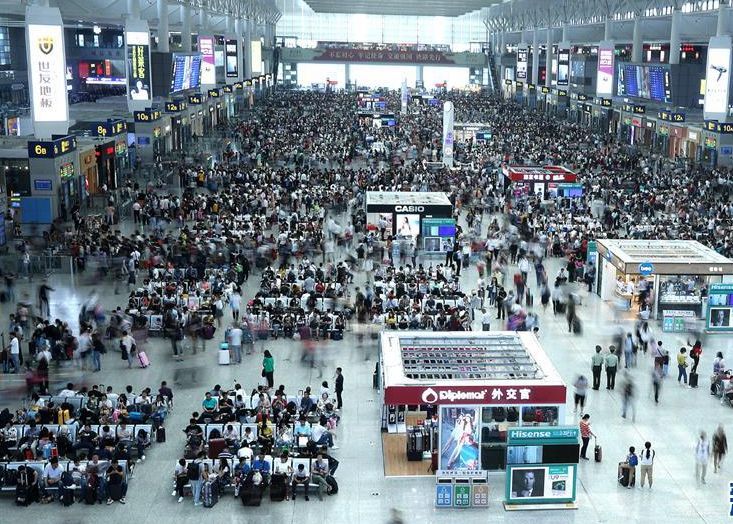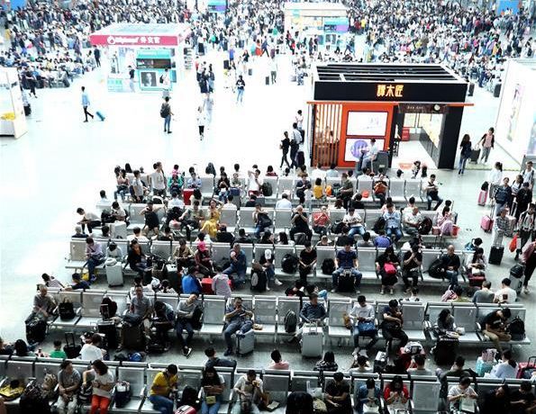 9月30日,旅客在上海虹桥火车站候车大厅内候车。记者从中国铁路上海局集团有限公司获悉,9月30日国庆假期前一天,长三角铁路迎来大客流,预计当天发送旅客252万人次,同比增长6.8%。新华社记者 陈飞 摄