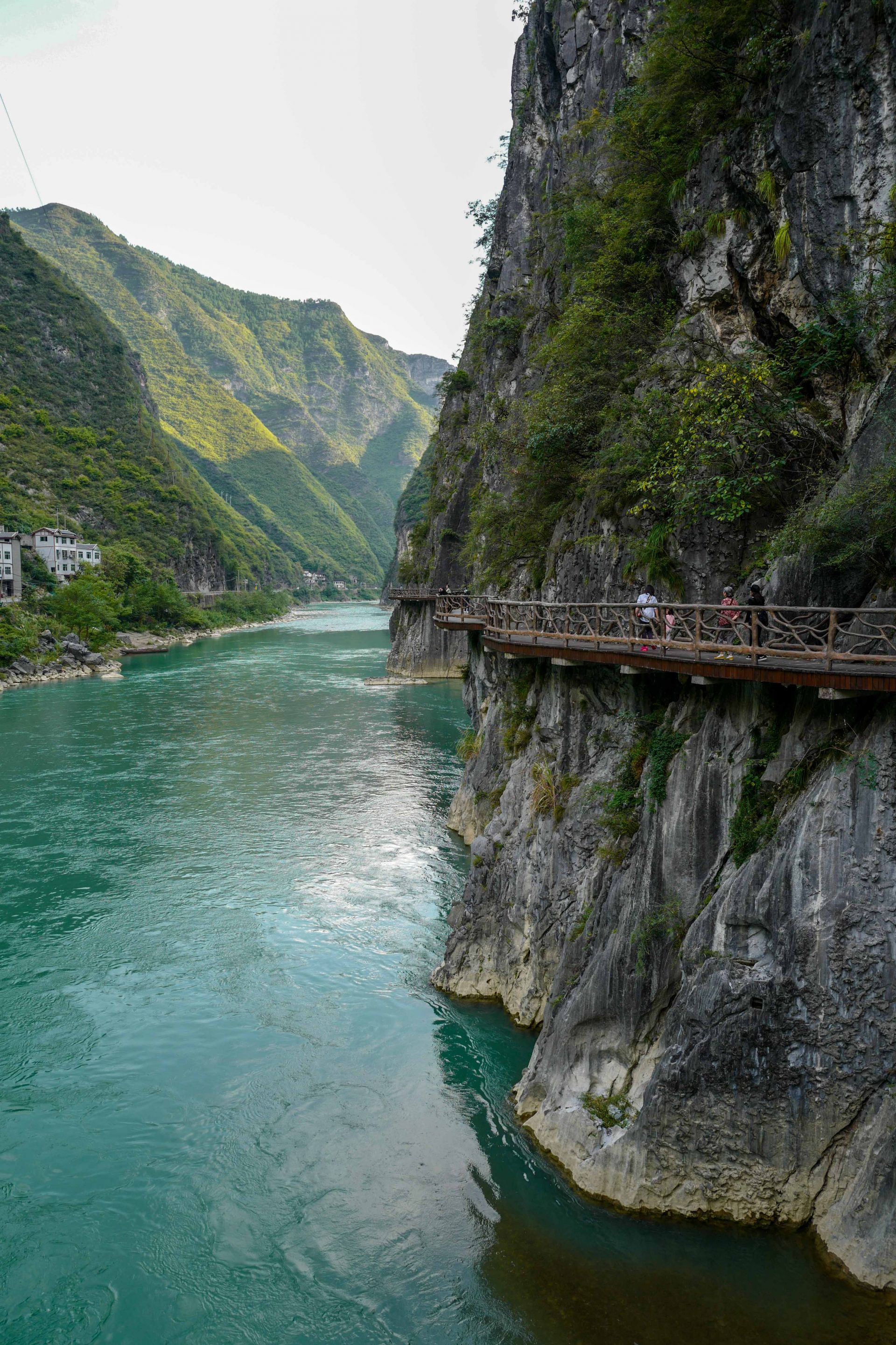 游客在巫溪县大宁河的沿河栈道上游览(10月3日摄)。新华社记者 刘潺 摄