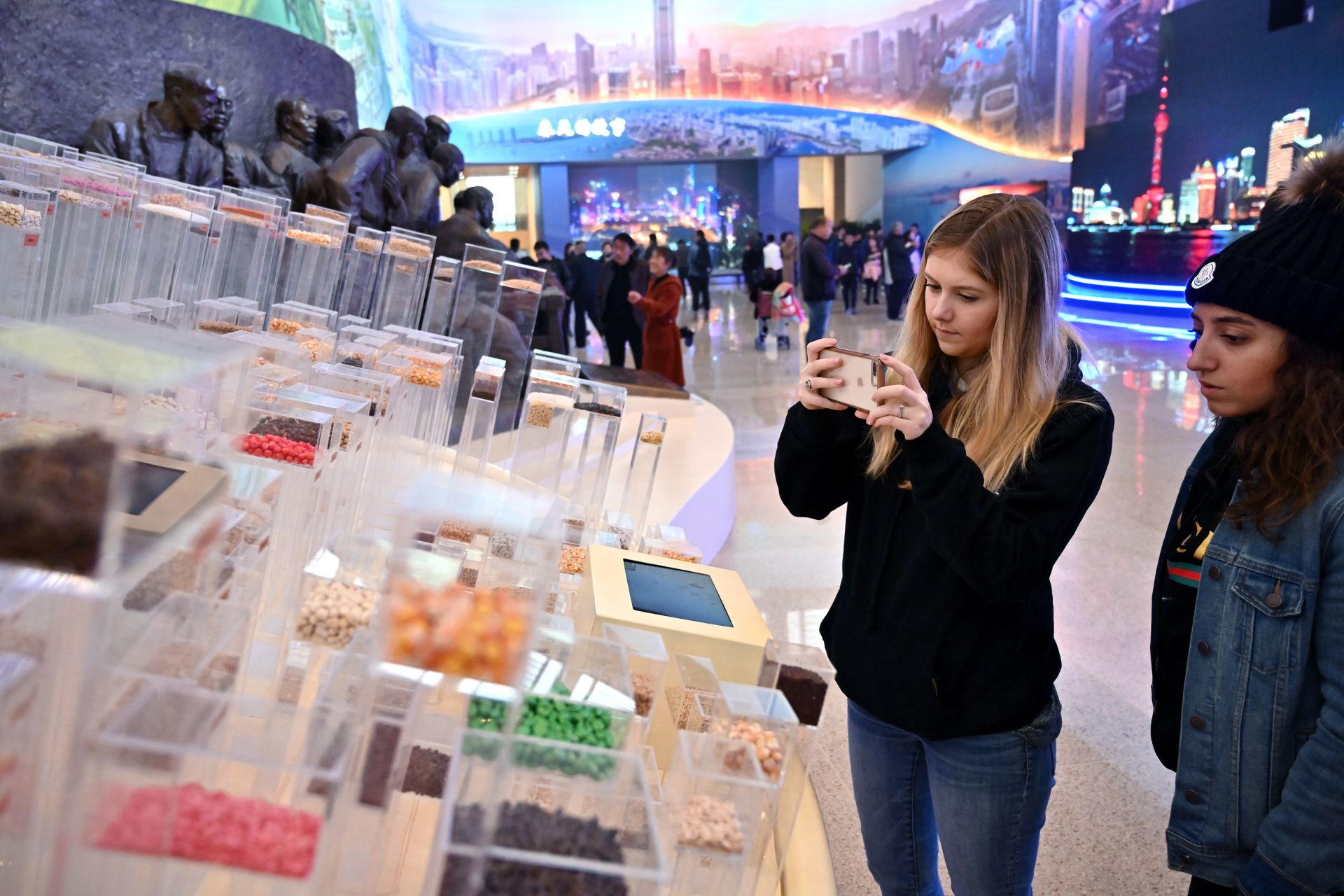 11月14日,观众在“伟大的变革——庆祝改革开放40周年大型展览”上观看上海浦东陆家嘴实景沙盘。新华社记者 李鑫 摄