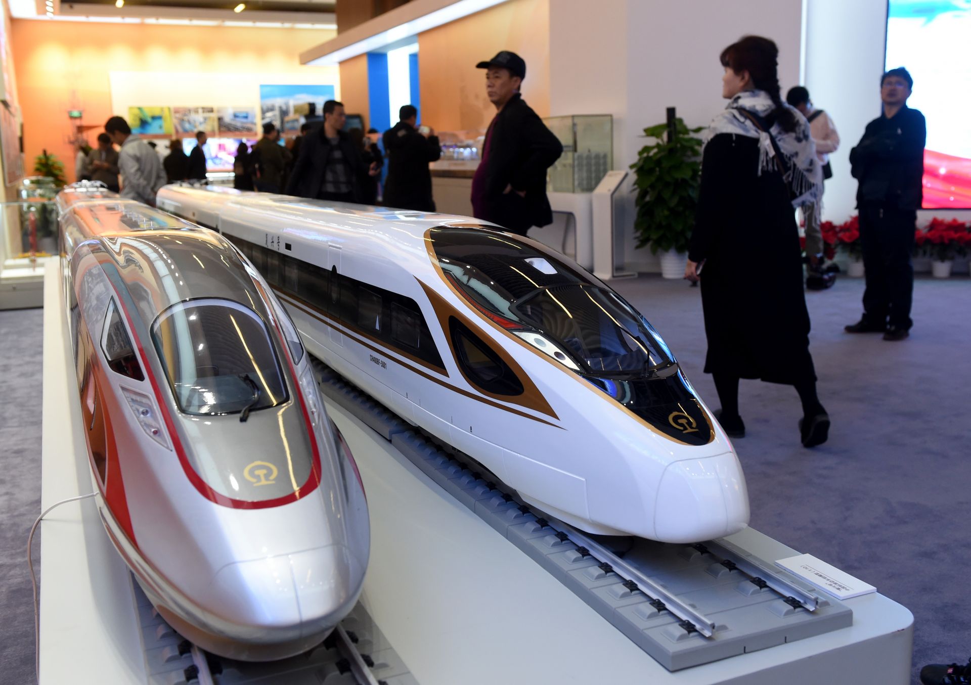 11月14日,观众在参观“复兴号”中国标准动车组模型。新华社记者 罗晓光 摄