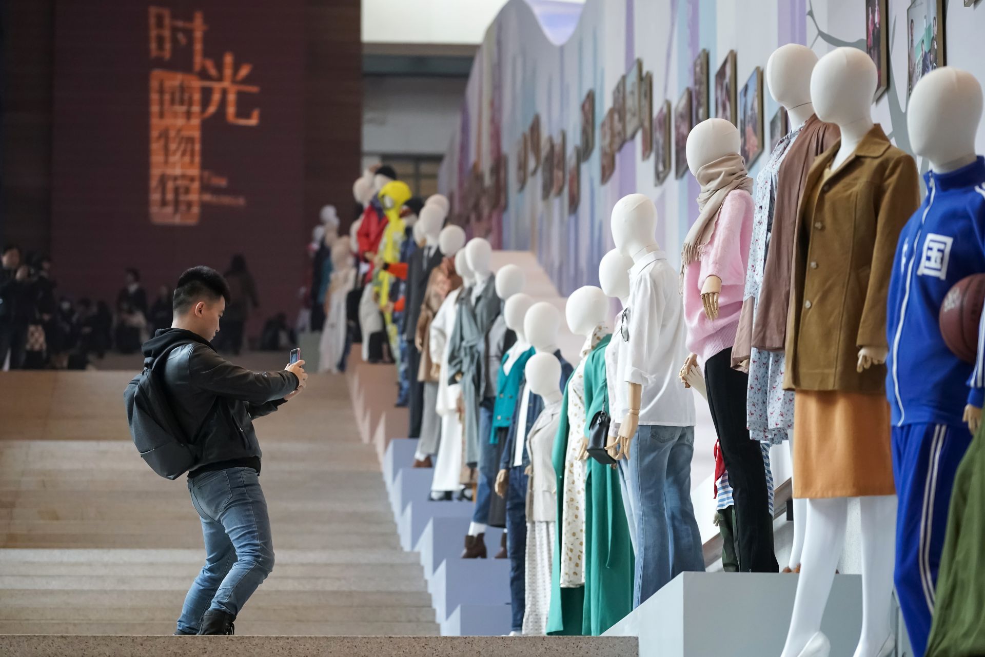 11月14日,来自北京服装学院的模特在展览上进行时装走秀,向观众展示改革开放40年来我国群众服装的变化。新华社记者 沈伯韩 摄