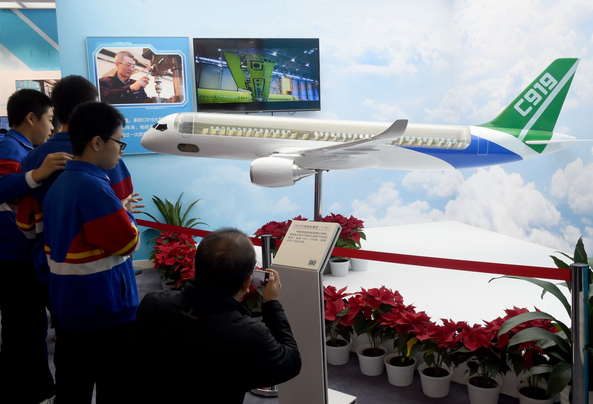 11月14日,观众在观看C919大型客机模型。新华社记者 罗晓光 摄